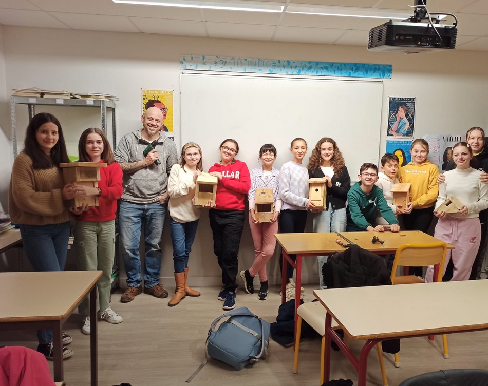 Notre projet va durer deux ans (2025 à 2027). Il va consister à construire divers habitats pour aider les animaux à venir sur l’ATE (nichoirs, habitats à insectes…). Nous voudrions aussi mettre en place des projets de sensibilisation des habitants de Thiers sur nos découvertes ! La proximité de notre future ATE à la Dore nous permettrait également de découvrir la place et les enjeux de l’eau dans la biodiversité et la société. pêche, traitement, coutellerie, papeterie …