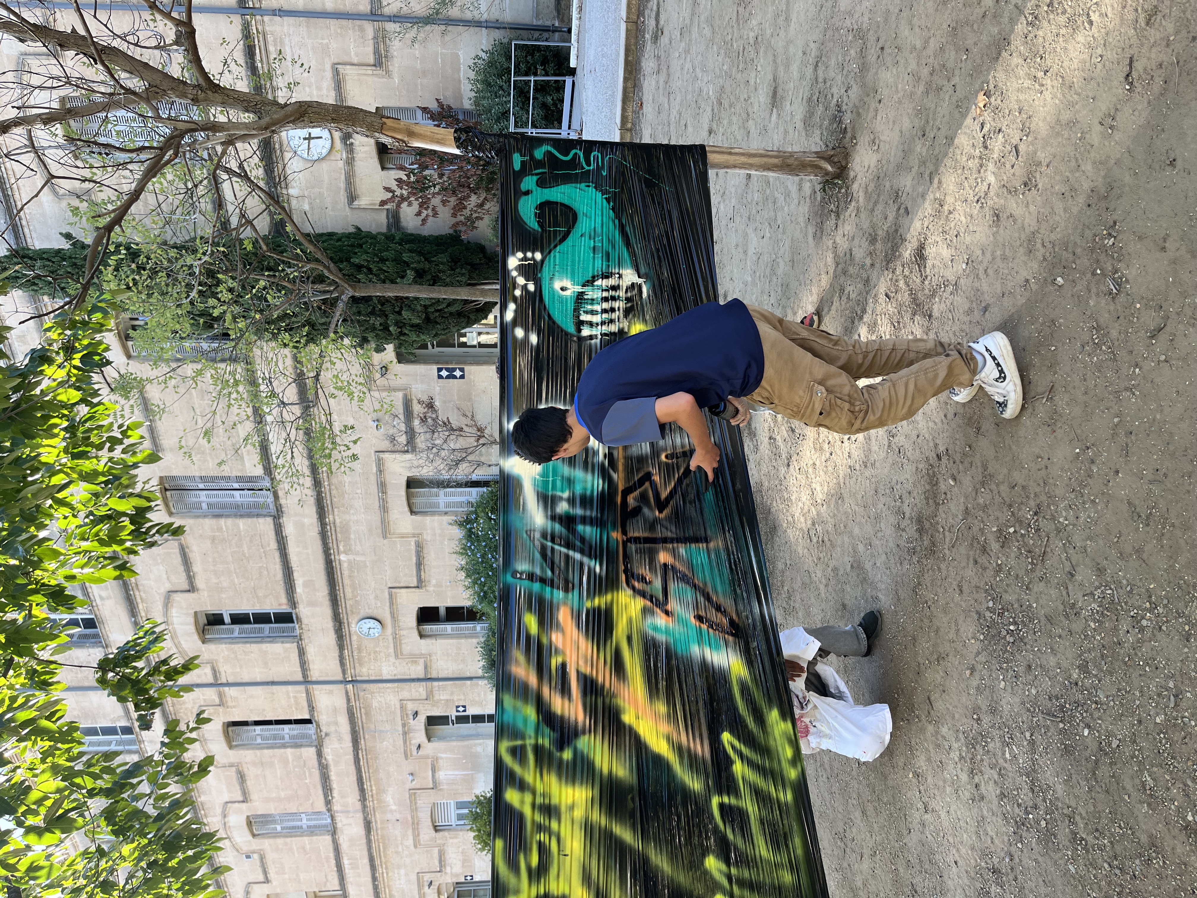 Le projet a démarré, simplement mais efficacement, et les élèves internes ont déjà appris la technique de la bombe, avant de débuter un travail plus traditionnel sur toiles.