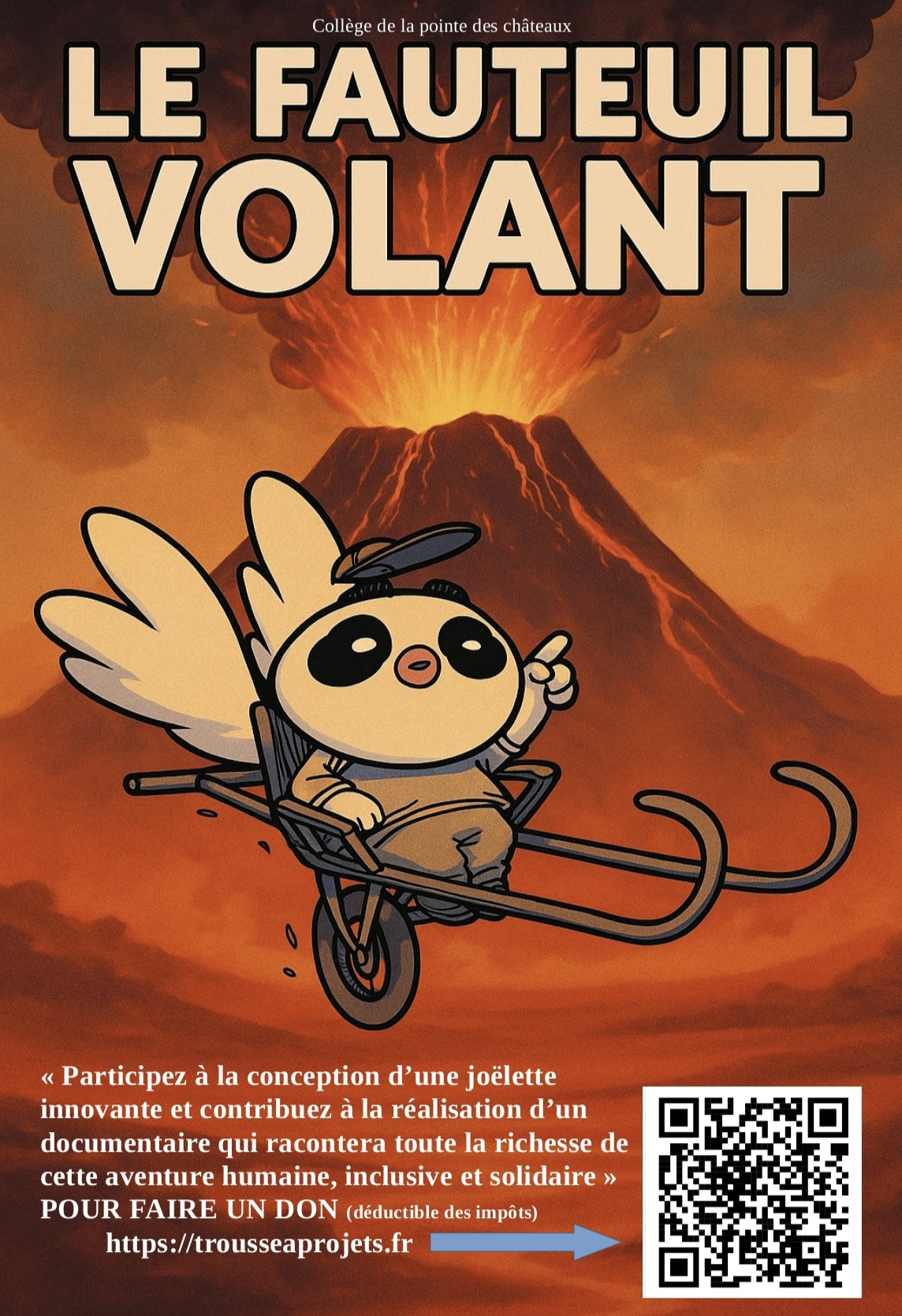 Luc, un élève de 3ème en fauteuil roulant, ne pouvait pas participer à une sortie scolaire sur un terrain escarpé comme le site du volcan. Pour lui permettre de vivre cette expérience, le projet de concevoir une joëlette (un fauteuil roulant tout terrain) a été lancé. Ce projet impliquera tous les élèves de 3ème, qui travailleront sous la supervision de leurs professeurs de technologie tout au long de l'année pour concevoir et réaliser la joëlette. Deux classes centraliseront les productions, et chaque élève aura une tâche spécifique. Le projet sera inscrit au concours national C GÉNIAL pour valoriser le travail des élèves. En juin 2026, les élèves porteront Lucette (la joëlette) pour aider Luc à gravir le piton Chisny, sous la supervision d'adultes pour la sécurité. Ce moment symbolique permettra à Luc de se rétablir et de franchir un nouveau cap après une lourde opération. Ce projet met en lumière l'inclusion, la solidarité et l'engagement des élèves. Un documentaire sera réalisé pour montrer l'ensemble de l'aventure et sensibiliser un large public.