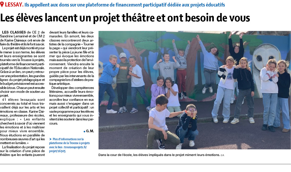 Soutenez les élèves de Cm2 et de Ce2 qui veulent apprendre à faire du théâtre avec la compagnie "Tourner la page".