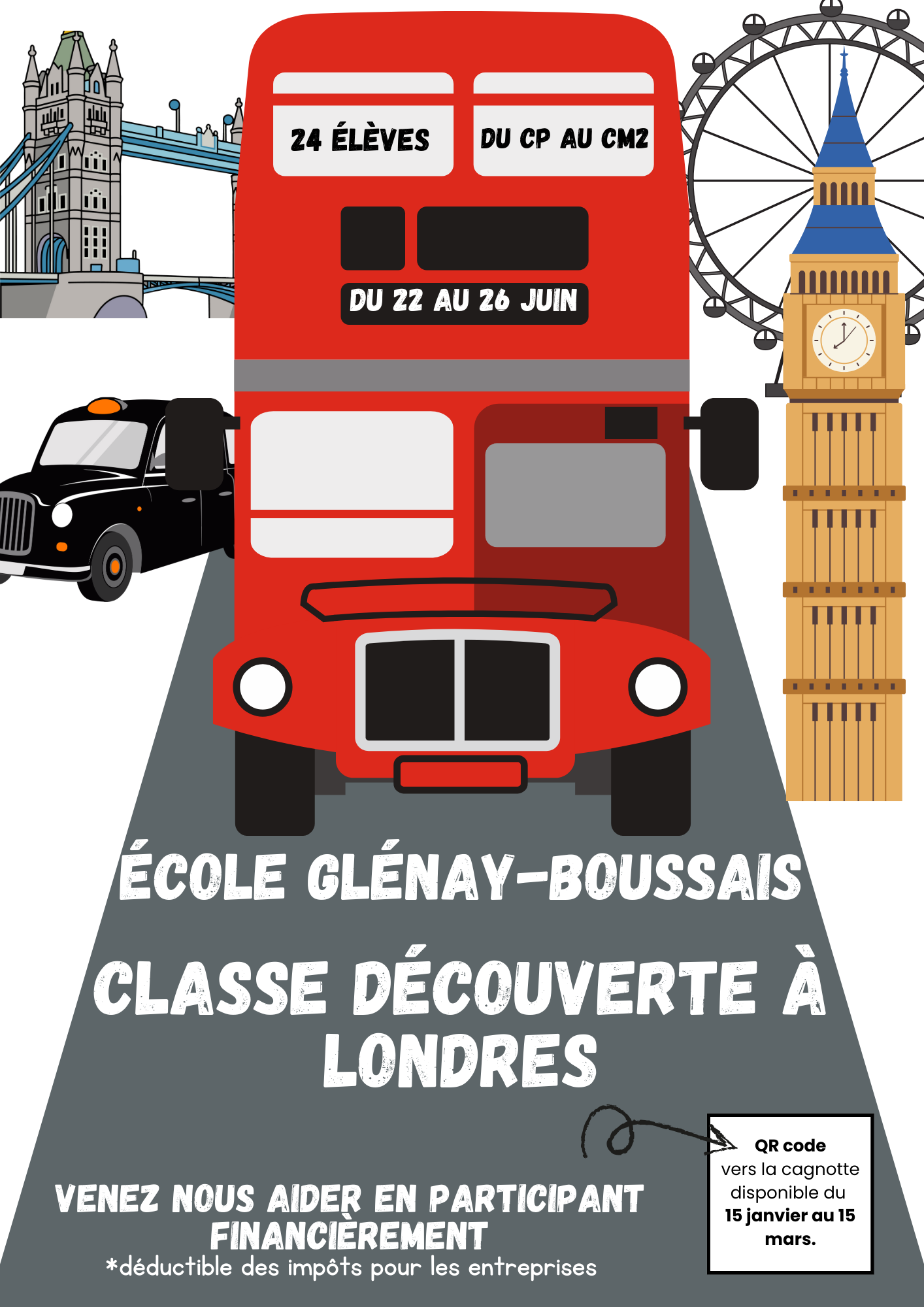 Participez au financement de notre classe découverte à Londres pour les élèves du CP au CM2 !