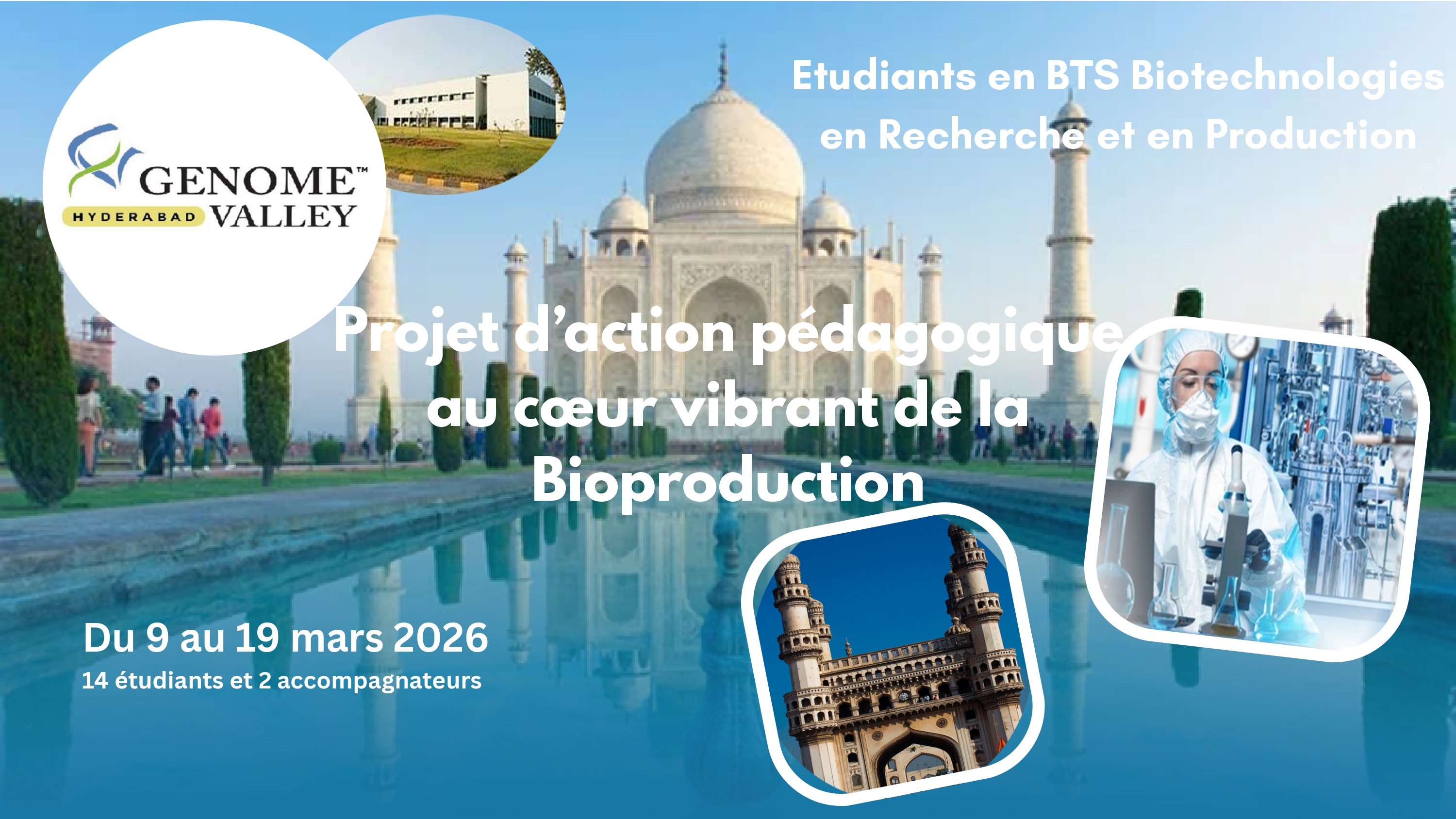 Les premiers jours seront passés à New Delhi, en partenariat avec les acteurs du lycée français international de Delhi et ceux de l’ambassade de France. Nous visiterons deux entreprises de bioproduction, une indienne, Biopharmaceutical Technology et une française, Biomérieux. Des temps d’échanges avec les élèves du lycée français sont prévus, avec en point d’orgue une présentation des filières BTS et notamment de notre BTS Bio-RP aux élèves du lycée et mais aussi à ceux de toute la zone Asie-Pacifique du réseau d’enseignement en français à l’étranger.