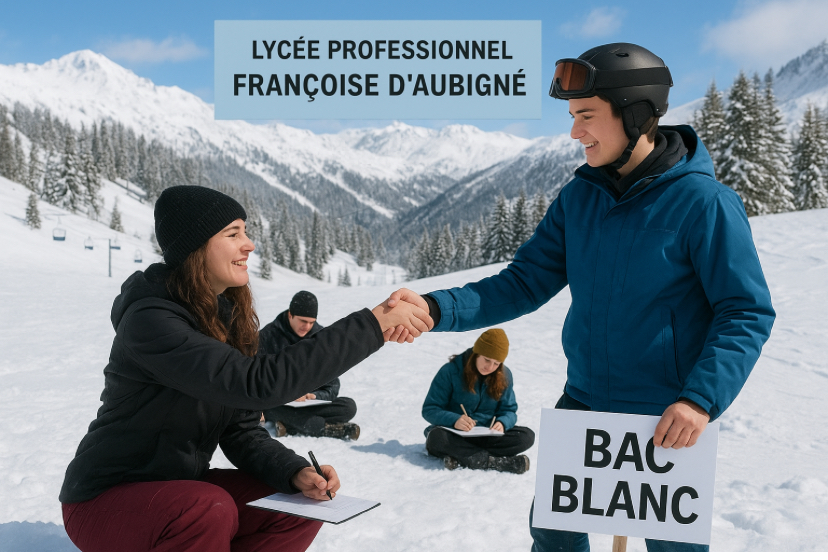 👉 "Bac Blanc à la neige", un séjour scolaire mêlant préparation aux épreuves du Bac Pro et activités de cohésion en montagne pour un effectif de 53 élèves de terminales.