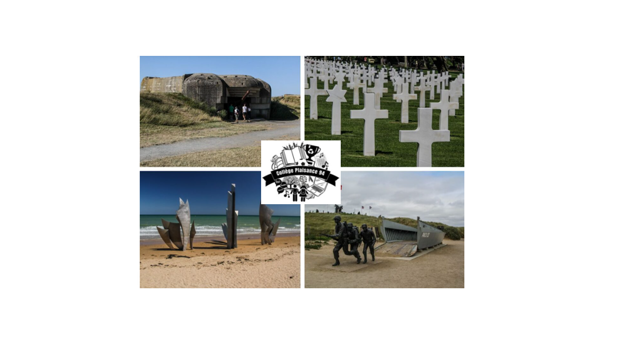 Les étapes du projet : La Normandie, région voisine de l'île de France et théâtre majeur de la Seconde Guerre mondiale, se prête bien au travail autour de la mémoire des faits historiques. Le débarquement permet de d'approfondir la notion d’engagement citoyen avec les exemples de jeunes soldats étrangers venus en France (cimetière de Colleville) + la notion de démocratie (la raison du combat) + la notion de solidarité international.