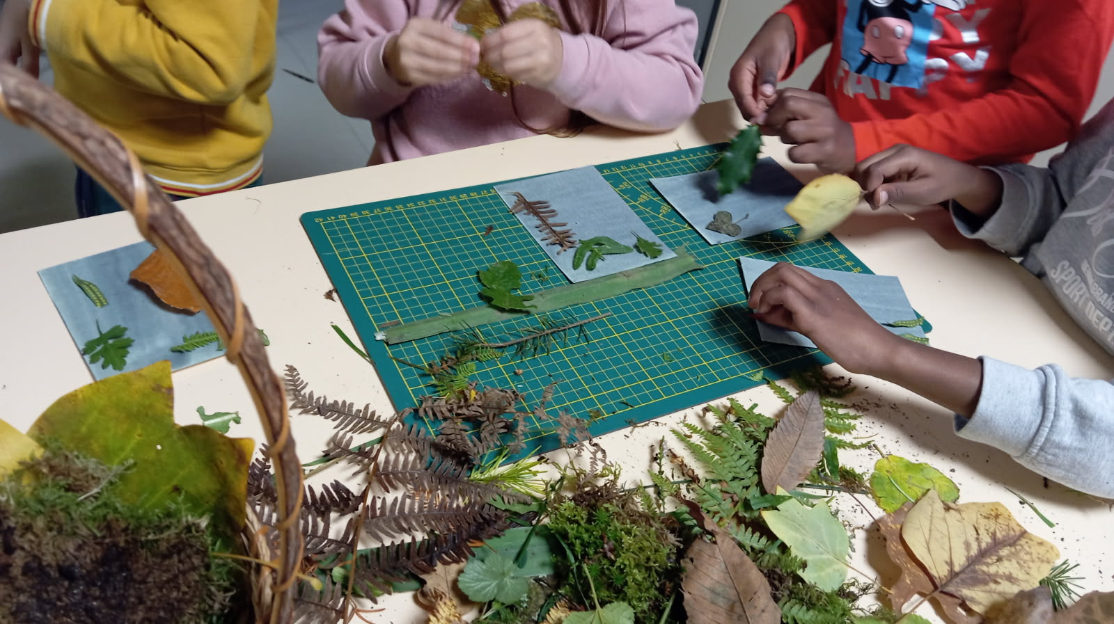 • Création de pochoirs négatifs de fleurs, d'insectes, de fruits et autres éléments présents dans la nature récoltés