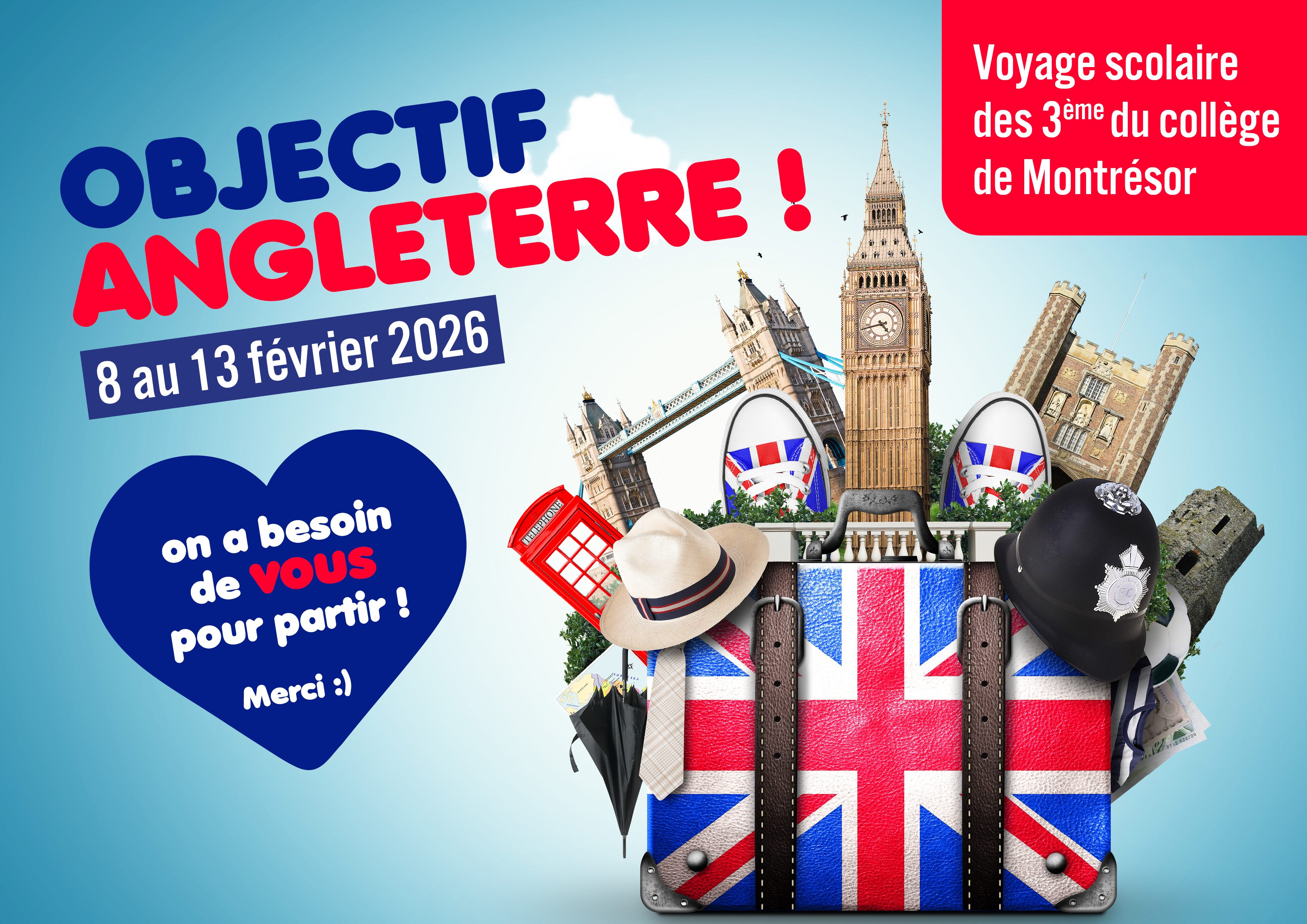 Aidez les 51 élèves de troisième du collège rural de Montrésor à partir au Royaume Uni.