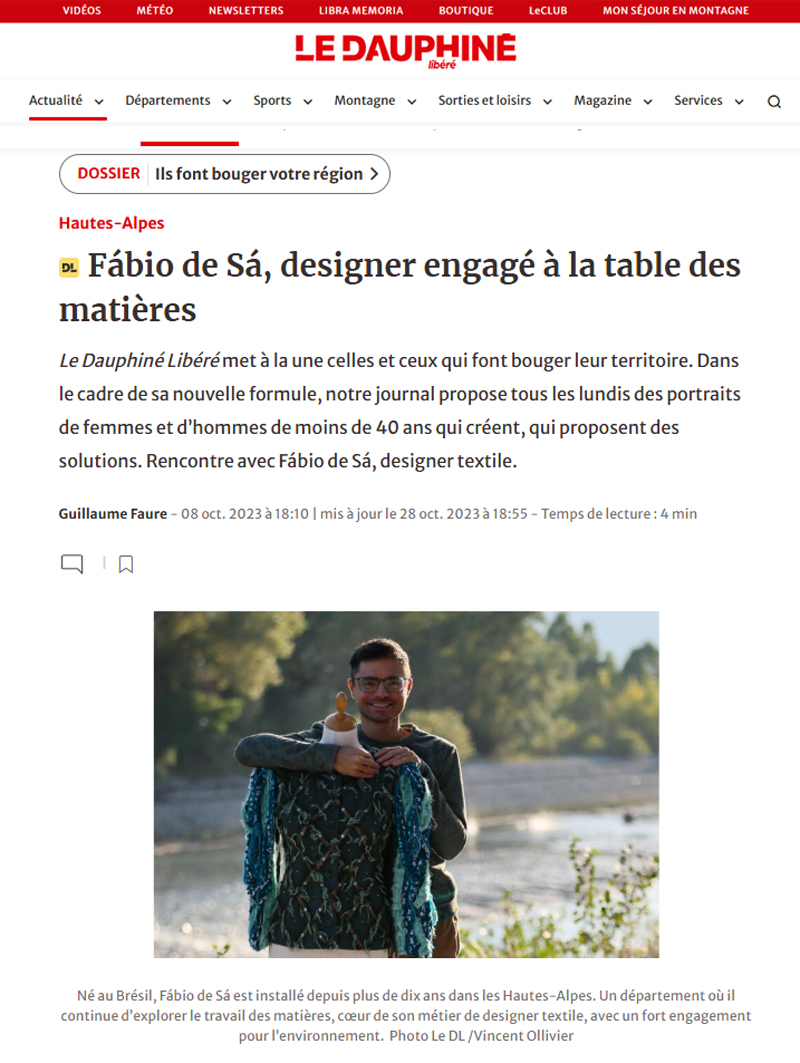En effet, Fabio fait régulièrement l'actualité dans son département et en France pour ses projets artistiques et ses innovations en terme de design et de upcycling. Il mixe avec talent l'art du design et la nécessité de repenser nos ressources pour continuer à créer et produire tout en prenant en compte notre impact sur la Terre.