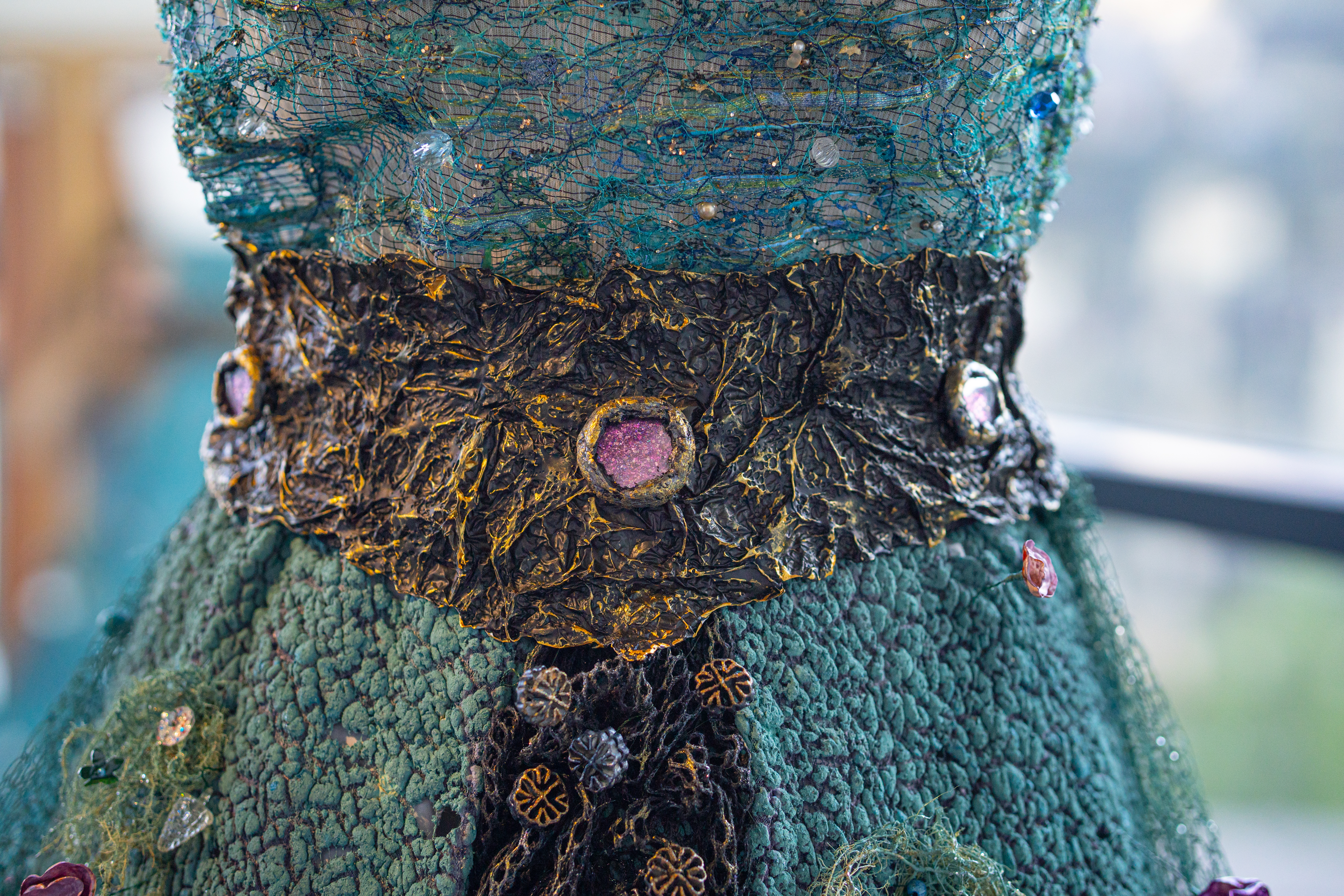 Cet artiste et designer, originaire du Brésil, vit aujourd'hui dans les Hautes-Alpes où il réalise de nombreuses expositions et anime des ateliers et des conférences à destination de tout public (personnes en insertion, enfants, scolaires, adultes curieux). Son inspiration première ? La Nature ! Et pour la protéger et sensibiliser à sa préservation, ses oeuvres et ses actions s'engagent, mobilisant des "déchets" en guise de matière première, détournant l'utilisation initiale des choses pour les transformer en ressource, leur donner une seconde vie, porteuse de messages. Ainsi, du papier journal devient les perles d'un collier, du plastique d'emballage les ornements fins et délicats de la robe "Dame Nature" (présentée au salon de la mode alternative à Paris en 2023), des plastiques "mous" de la matière à coudre ensemble pour élaborer de nouvelles textures, de nouveaux textiles. Autant d'objets qui, retravaillés ensemble, ne finissent plus dans l'océan à polluer l'eau ou à étouffer les tortues marines !