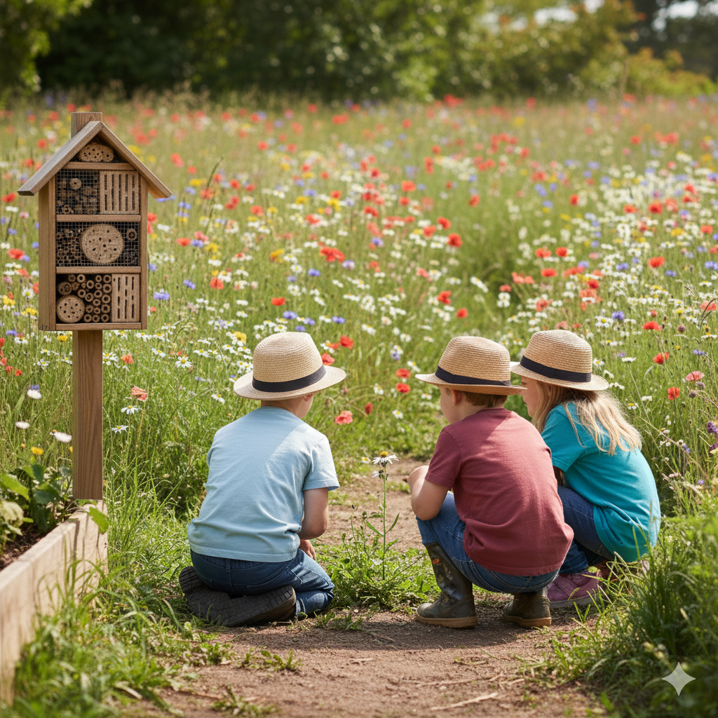 Nous nous lançons dans un projet de conception, création et gestion d'un espace naturel, dédié à la préservation de la biodiversité. Il prendra la forme d'un jardin accueillant pour la biodiversité avec les pancartes explicatives qui vont avec.