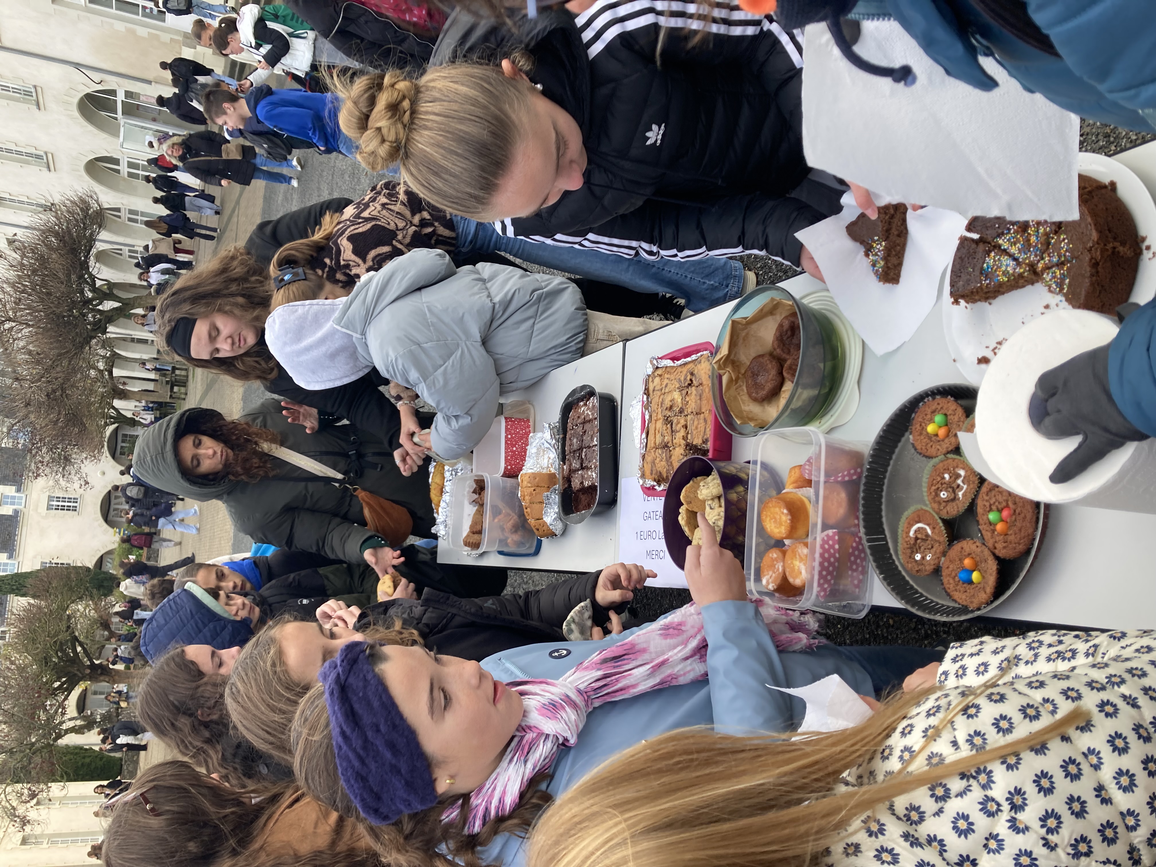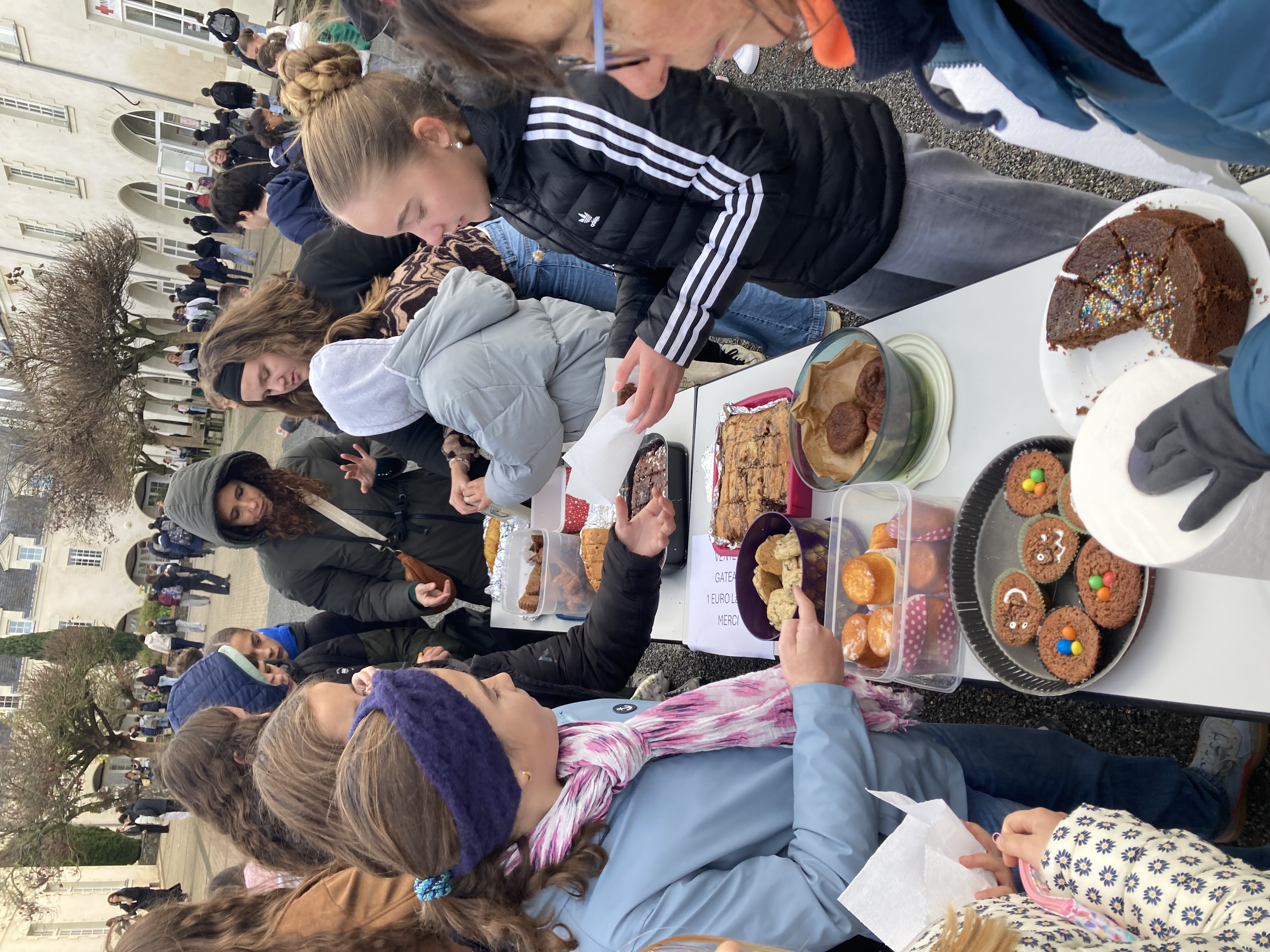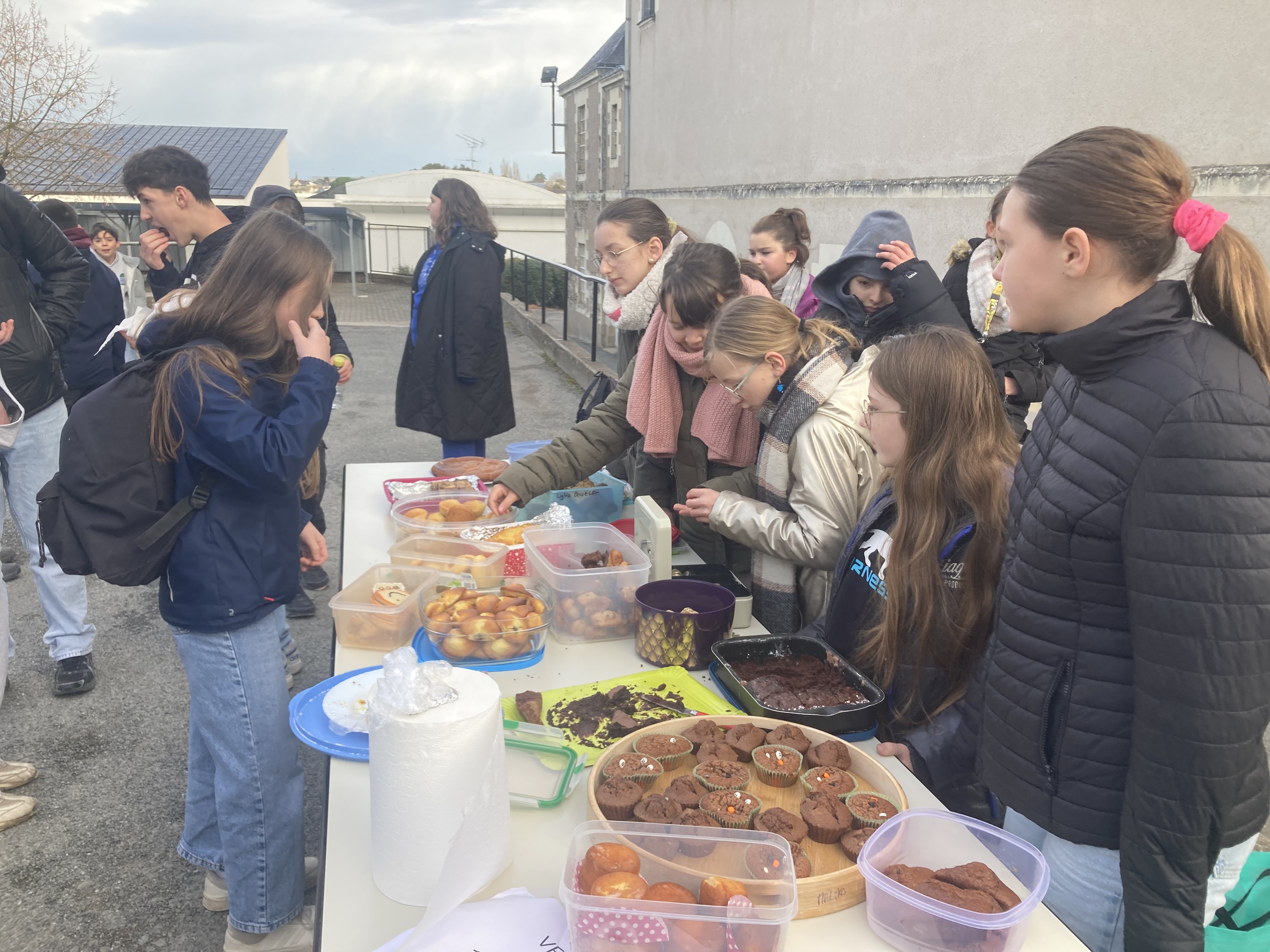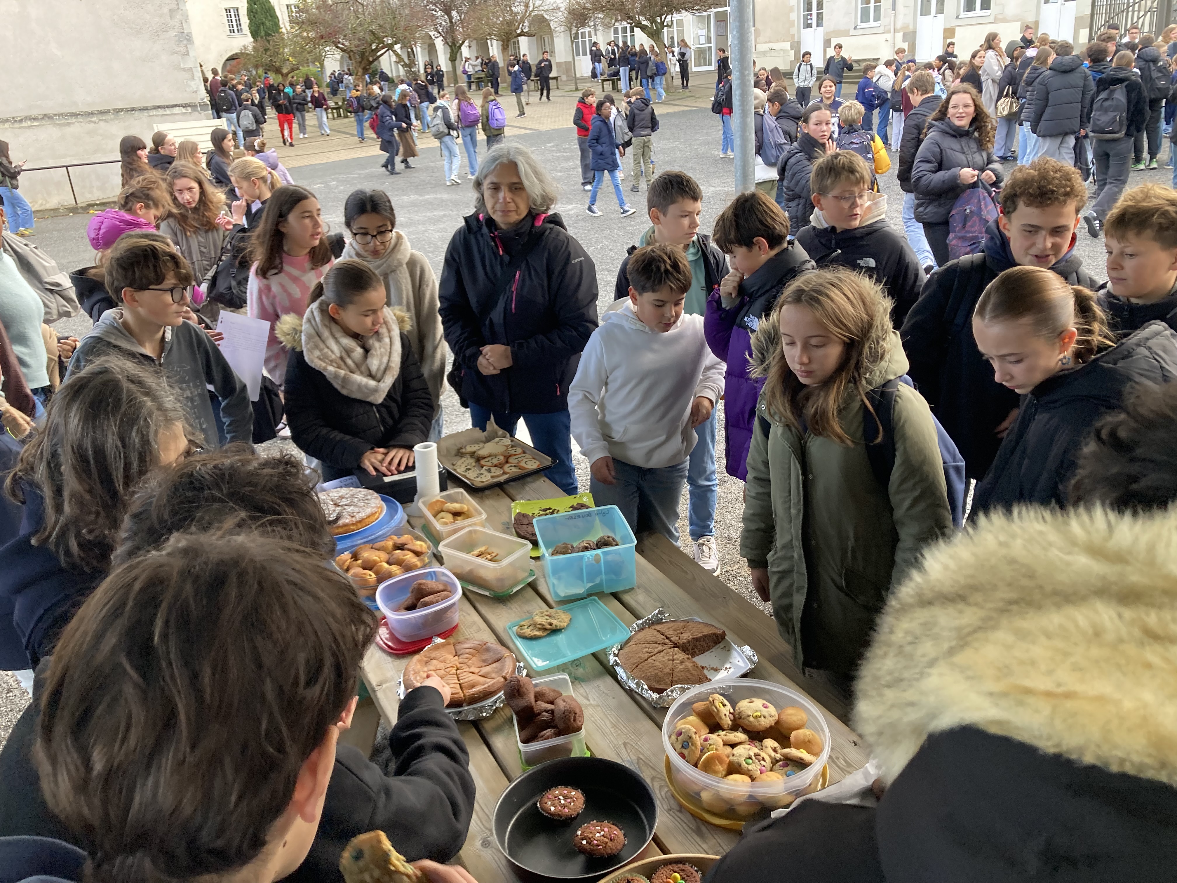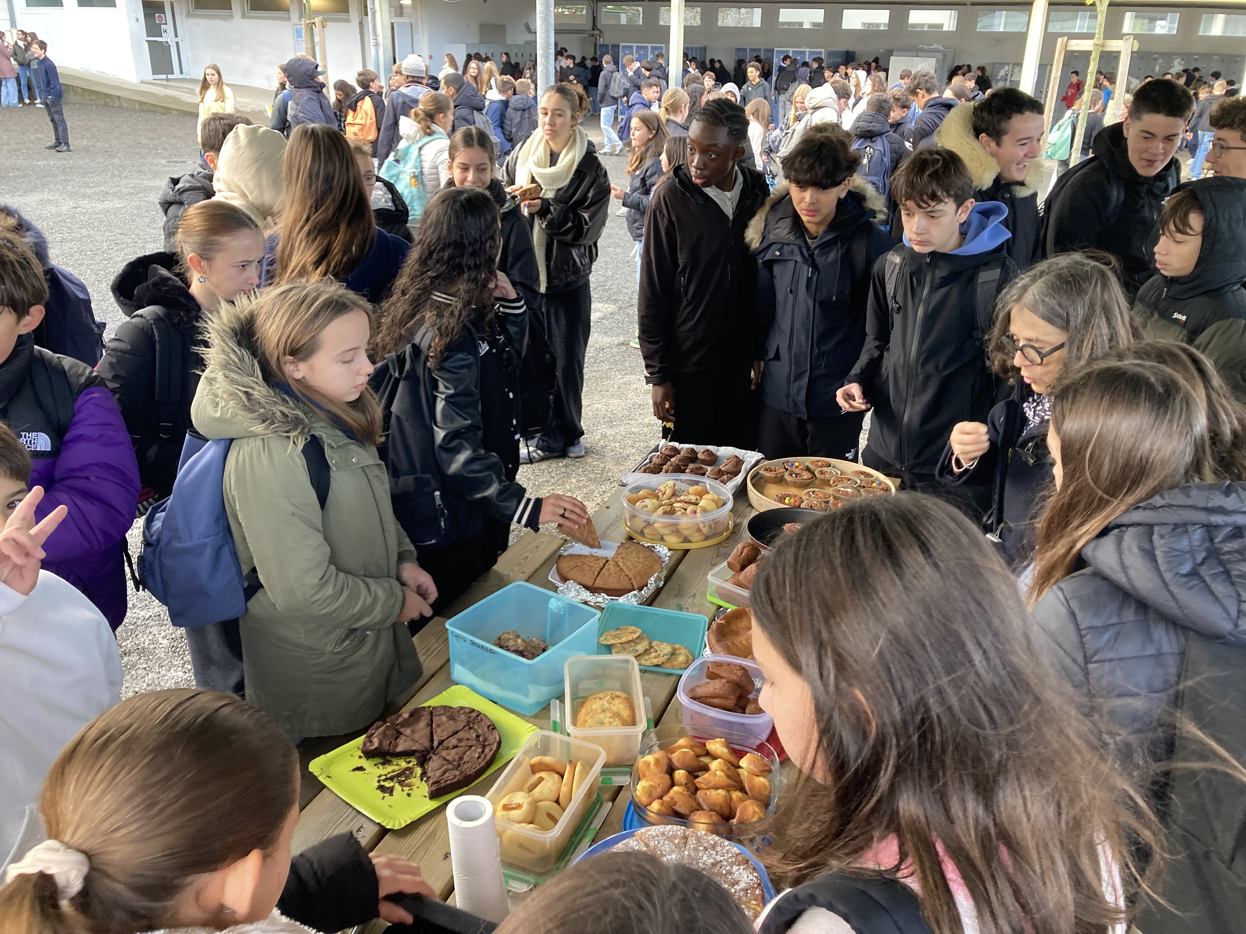 Réalisation des gâteaux, mise en place des stands, servir les 149 parts vendues. Encadrés par leurs professeurs de français, d'EPS, de mathématiques, d'anglais et de leur AESH, ils ont pu s'entraîner à rendre la monnaie dans une situation réelle. Un excellent exercice !