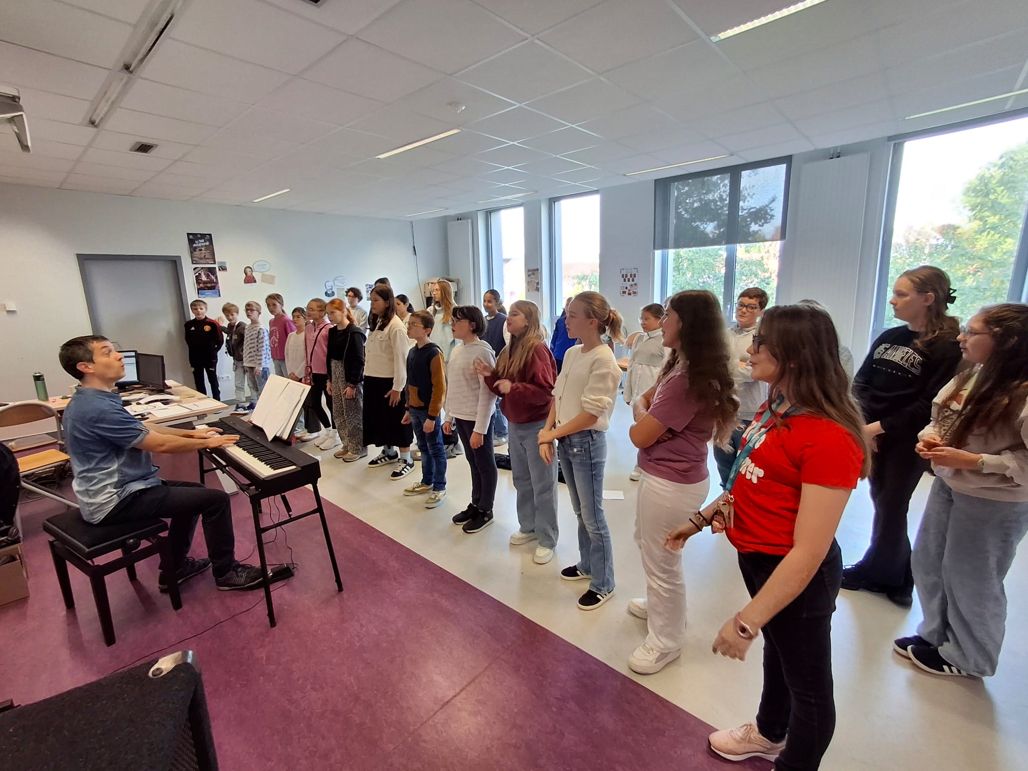 La chorale du collège regroupe 40 élèves volontaires, de la 6e à la 3e, qui se retrouvent chaque jeudi avec enthousiasme pour chanter ensemble.