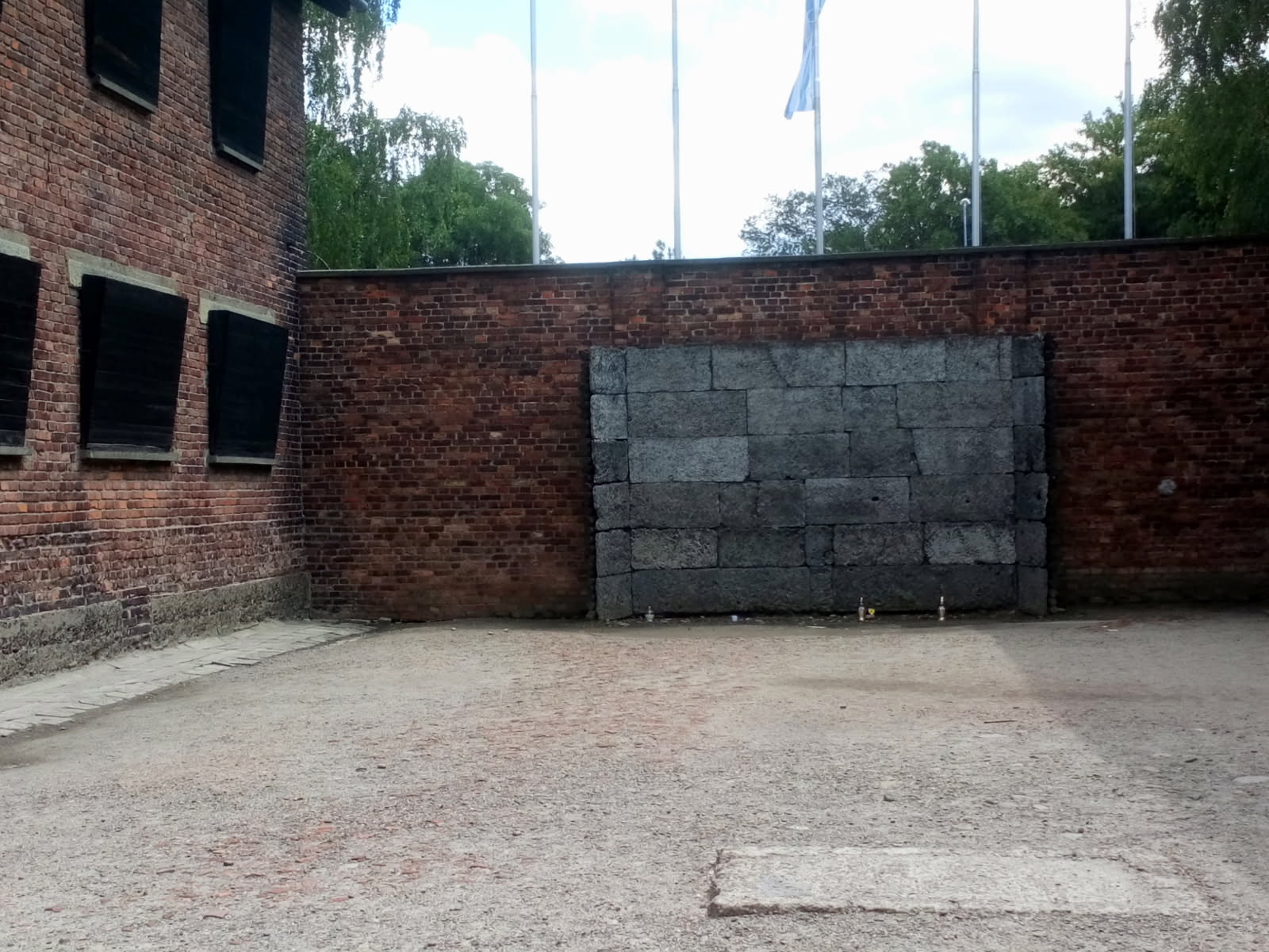 Exposition aux blocs de Auschwitz I – Stammlager: le bloc de la mort, le mur d’exécution, une chambre à gaz et un four crématoire seuls et uniques sauvegardés.
