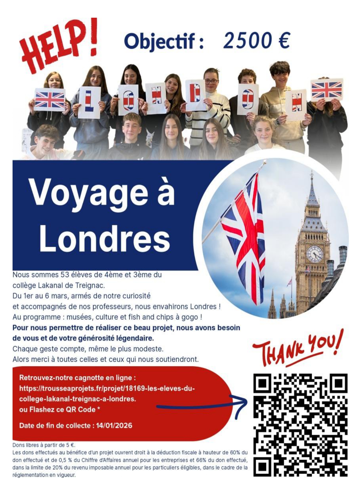 Aidez 53 élèves du collège Lakanal de Treignac à partir à Londres.