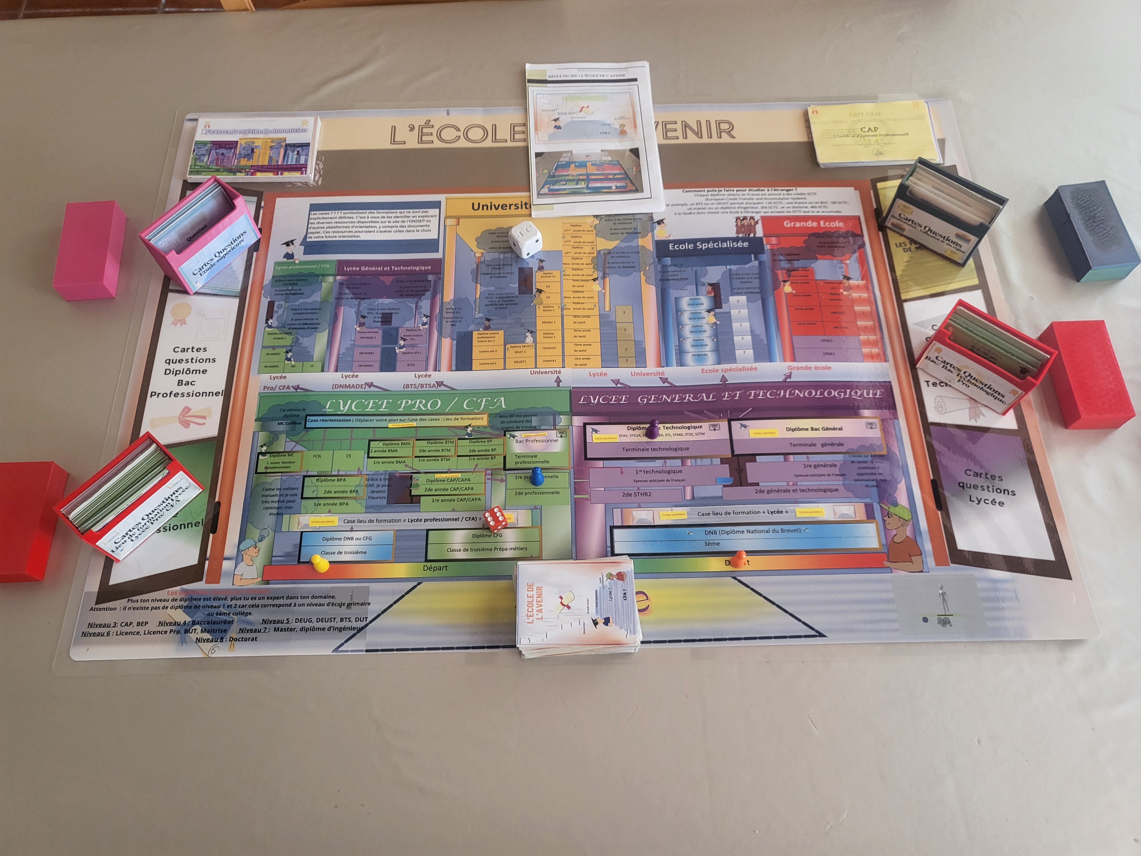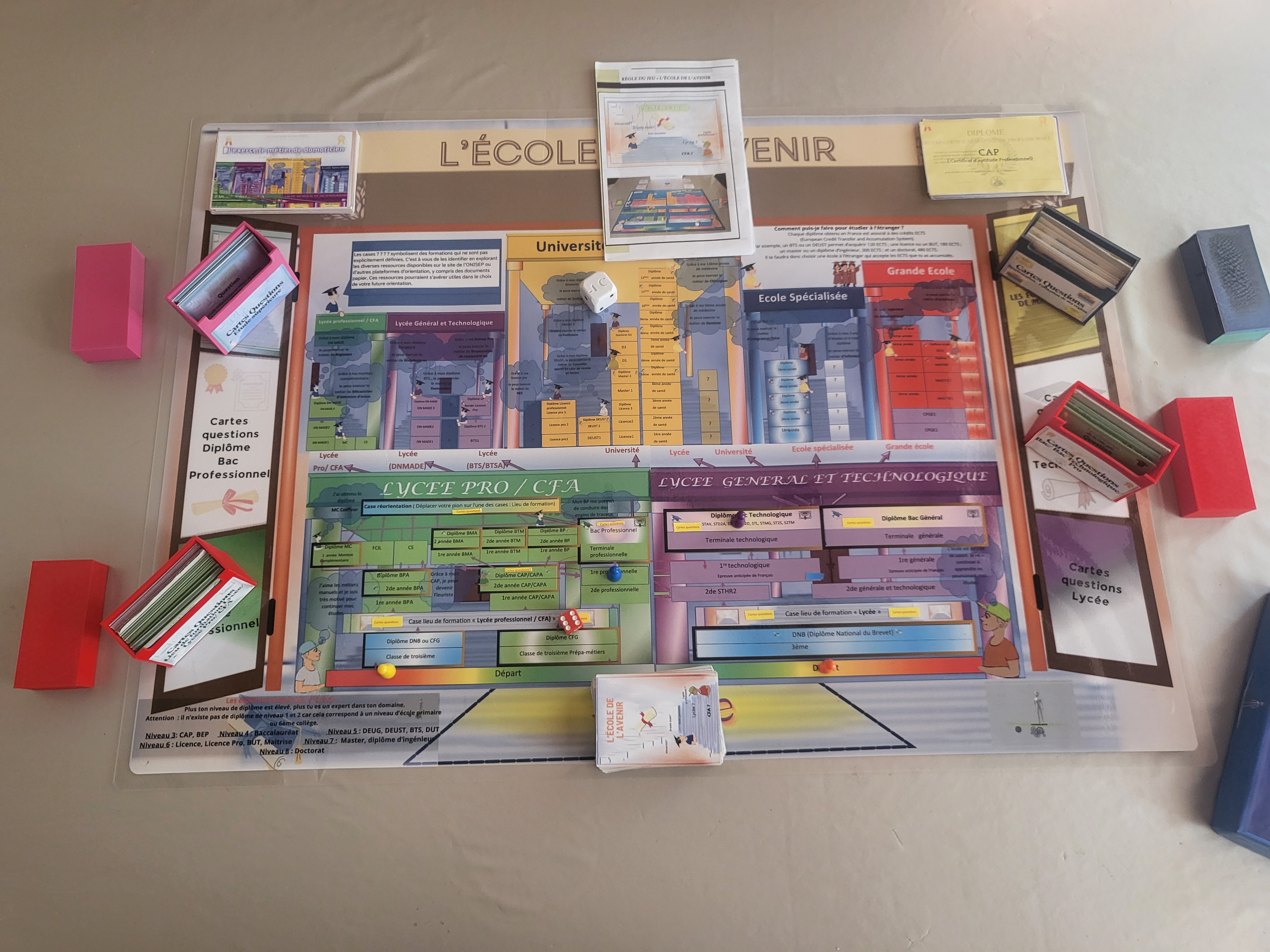 En tant qu’enseignant de collège et acteur engagé dans la conception d’outils pédagogiques alliant technologie et orientation, j’ai souhaité contribuer à la résolution de cette problématique en créant un jeu de société intitulé « L’école de l’avenir ».