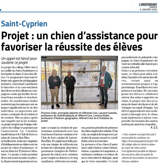 Ce projet, premier du genre dans le département des Pyrénées-Orientales, s’inscrit pleinement dans une dynamique solidaire et territoriale. Il est porté localement avec l’appui de La Catalane Handi’Chiens, des Bouchons d’Amour Catalans ainsi que du club sportif Les Phoenix Catalans, dont l’engagement confirme l’intérêt collectif pour cette initiative éducative.