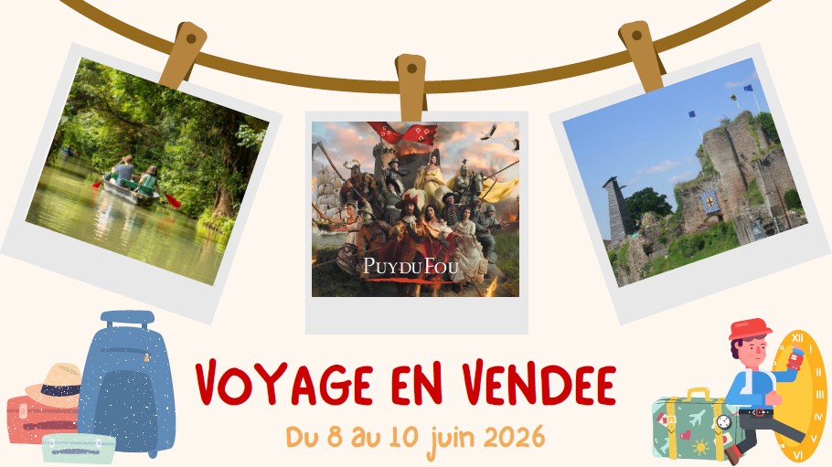 Du 8 au 10 juin 2026, les élèves et leurs enseignantes partiront en Vendée pour découvrir le Marais Poitevin en barque. Ils plongeront ensuite dans le passé au travers d'une journée de spectacles au Puy du Fou et d'une visite à la forteresse médiévale de Tiffauges. Les enfants y réaliseront des ateliers sur le Moyen-Age. Ce voyage sera aussi l'occasion de développer l'autonomie, ainsi que les compétences psycho-sociales de nos élèves autour d'une expérience de vivre ensemble différente. Il permettra de réunir les élèves des deux sites de notre école dans un moment unique de partage.