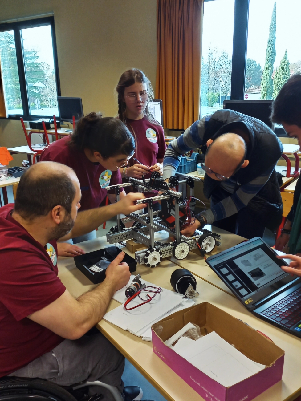 Nous participons à un défi robotique organisé par First Robotique France. C'est un projet très riche car nous devons monter un robot, le programmer, le préparer pour les épreuves qui nous attendent. Le projet ne s'arrête pas à ces aspects scientifiques et techniques puisque nous devons créer une équipe soudée, apprendre à bien travailler ensemble, communiquer autour de l'avancée du projet, chercher des sponsors...