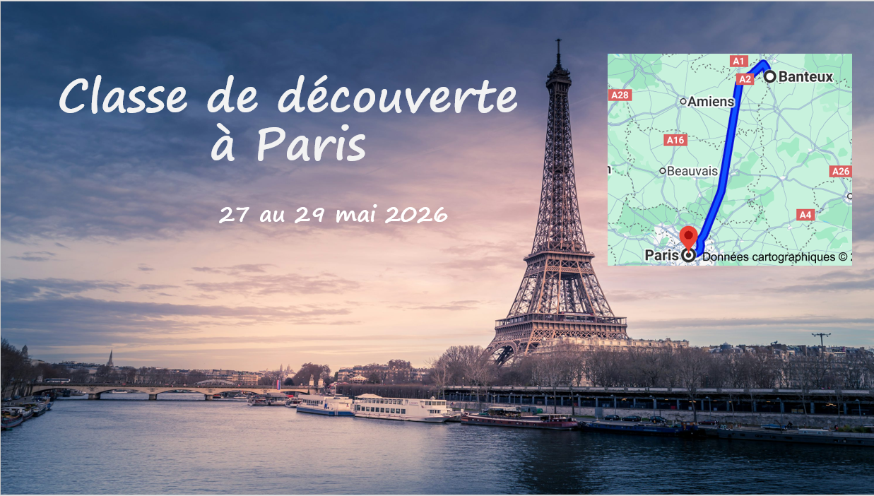 Nous sommes 2 classes du CP au CM2 qui réunissent 39 élèves. Une classe se trouve à Banteux, l'autre à Bantouzelle. Deux petits villages d'environ 300 habitants dans le Nord de la France. Une classe de découverte représentant un budget conséquent, nous ne pouvons l'organiser que tous les 3 ans.