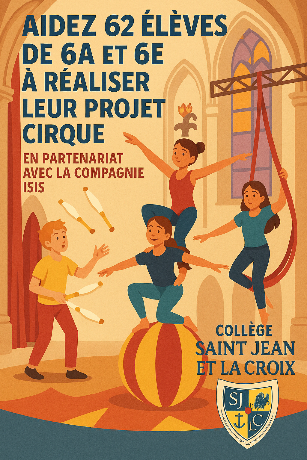 Le Collège Saint Jean et la Croix est un établissement privé sous contrat, attaché à des valeurs humaines et solidaires, dont la devise est « Former un homme de cœur ». L’équipe éducative met un point d’honneur à encourager la curiosité, l’ouverture culturelle et l’esprit d’équipe. Ce projet de cirque s’inscrit pleinement dans cette démarche : apprendre à se dépasser, à travailler ensemble et à s’exprimer autrement.