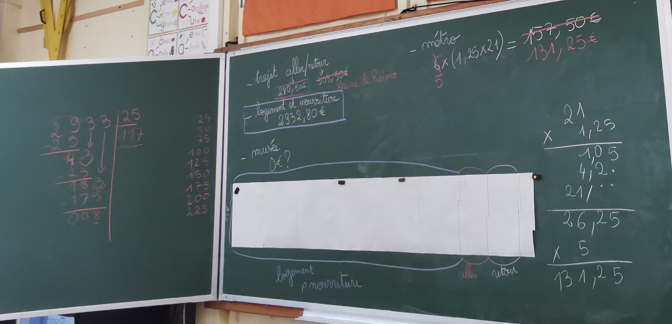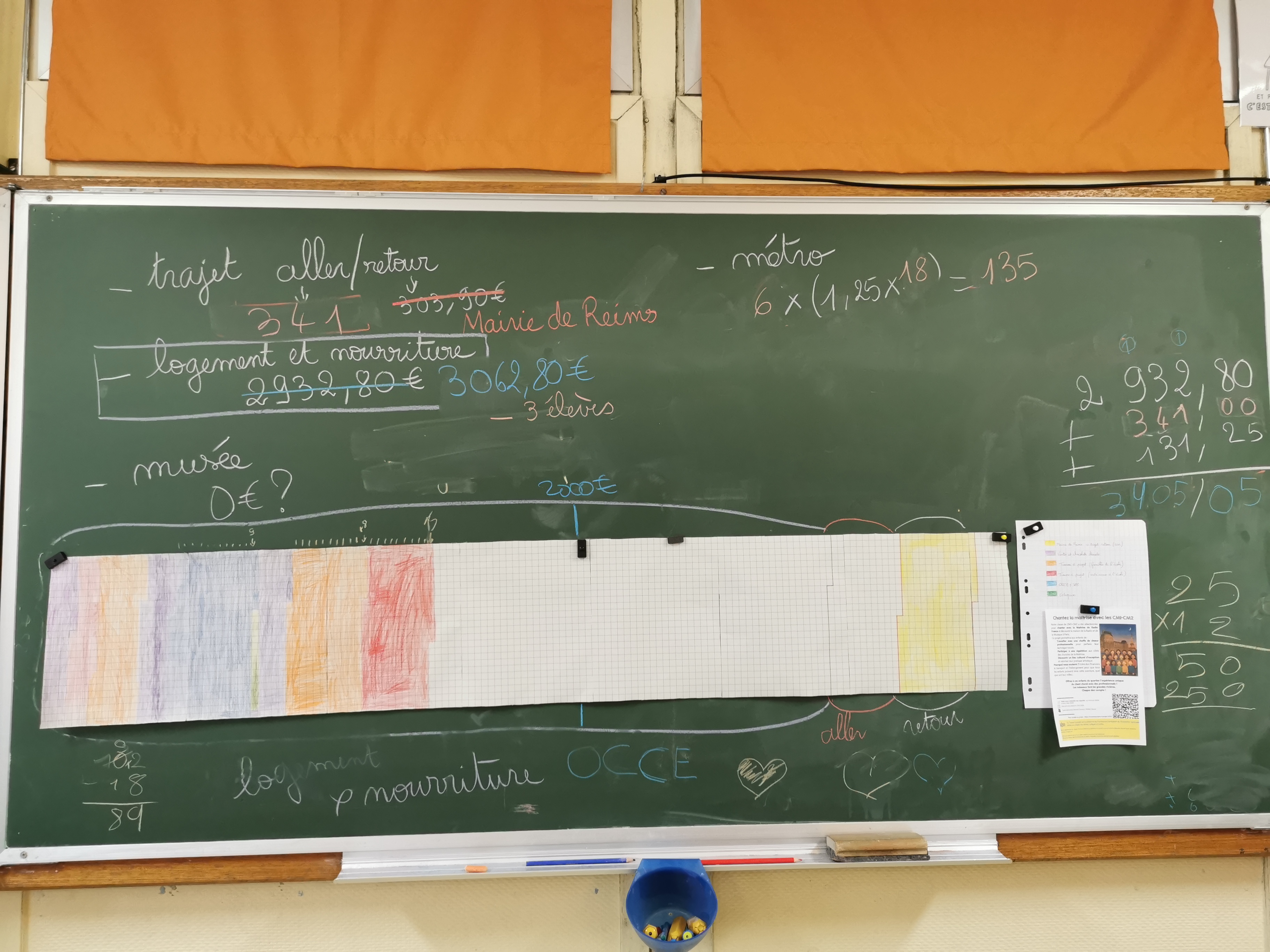 Le tableau de la classe, avec les calculs des dépenses et le tableau de suivi.