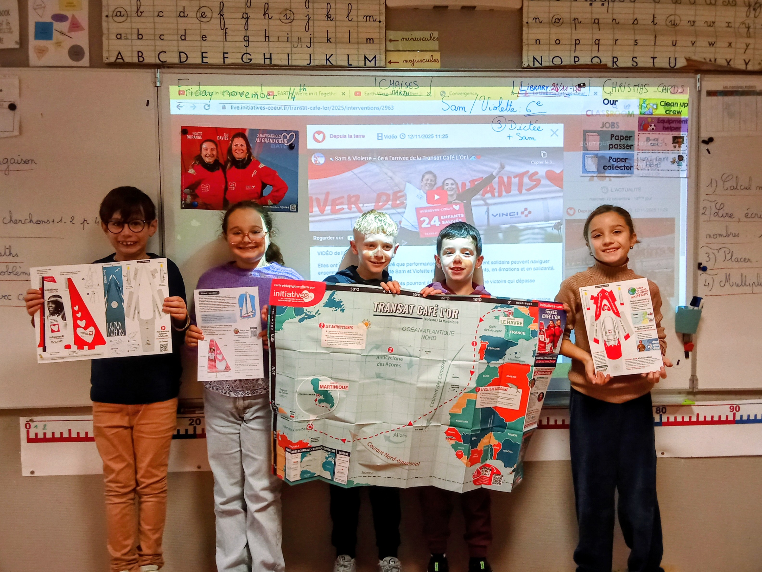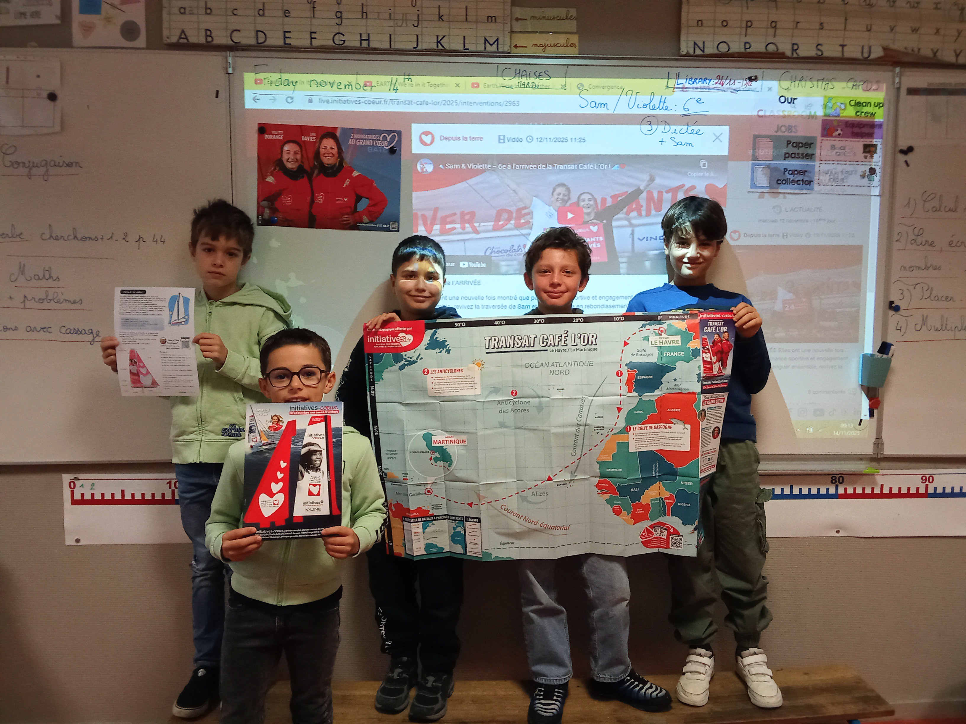 Grâce à cette course, nous avons découvert l'univers de la navigation, de la vie sur un voilier , sur les cartes et des planisphères , sur la pollution des mers et océans (le continent de plastique) , des personnes qui essaient d'y remédier comme Boyan Slat ou Rob Greenfield .....