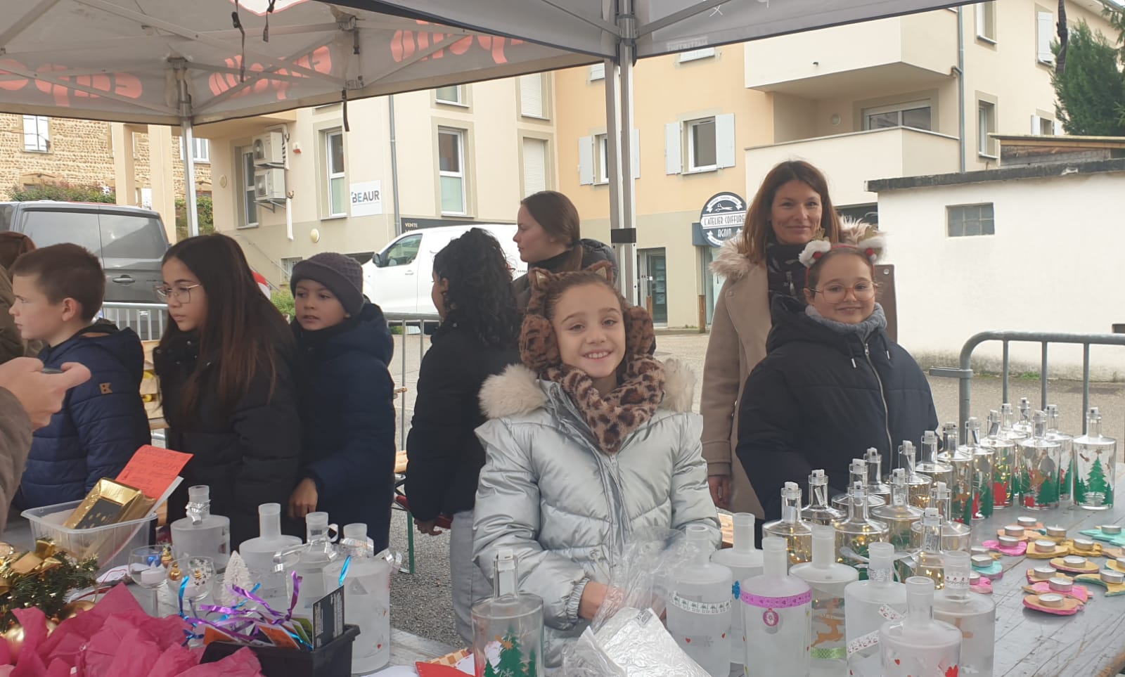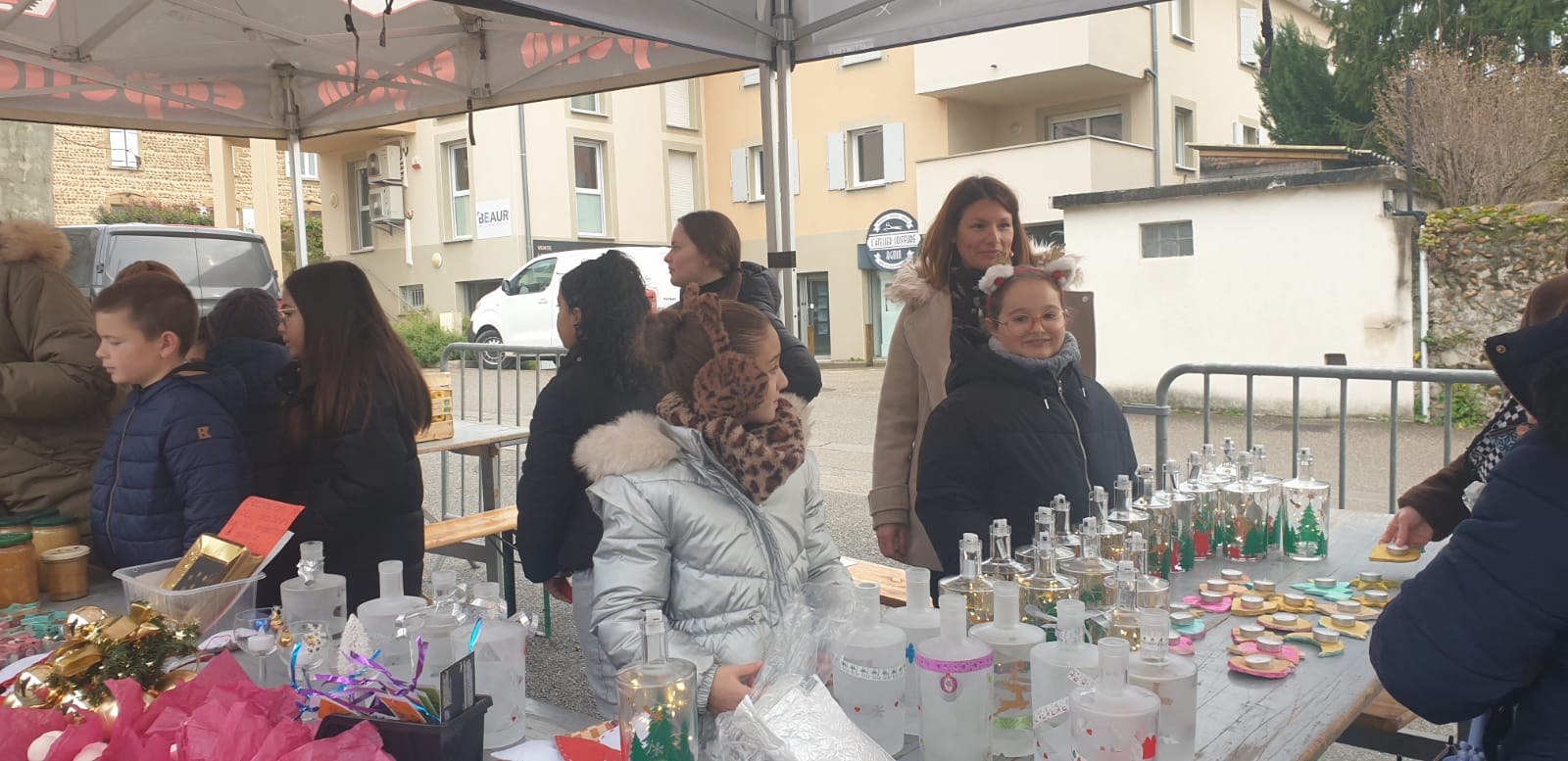 Après une vente de gâteaux et de jus de fruits proposés à tous les élèves de l'école lors du dernier jour de classe de la période , ils préparent activement leur marché de Noel.