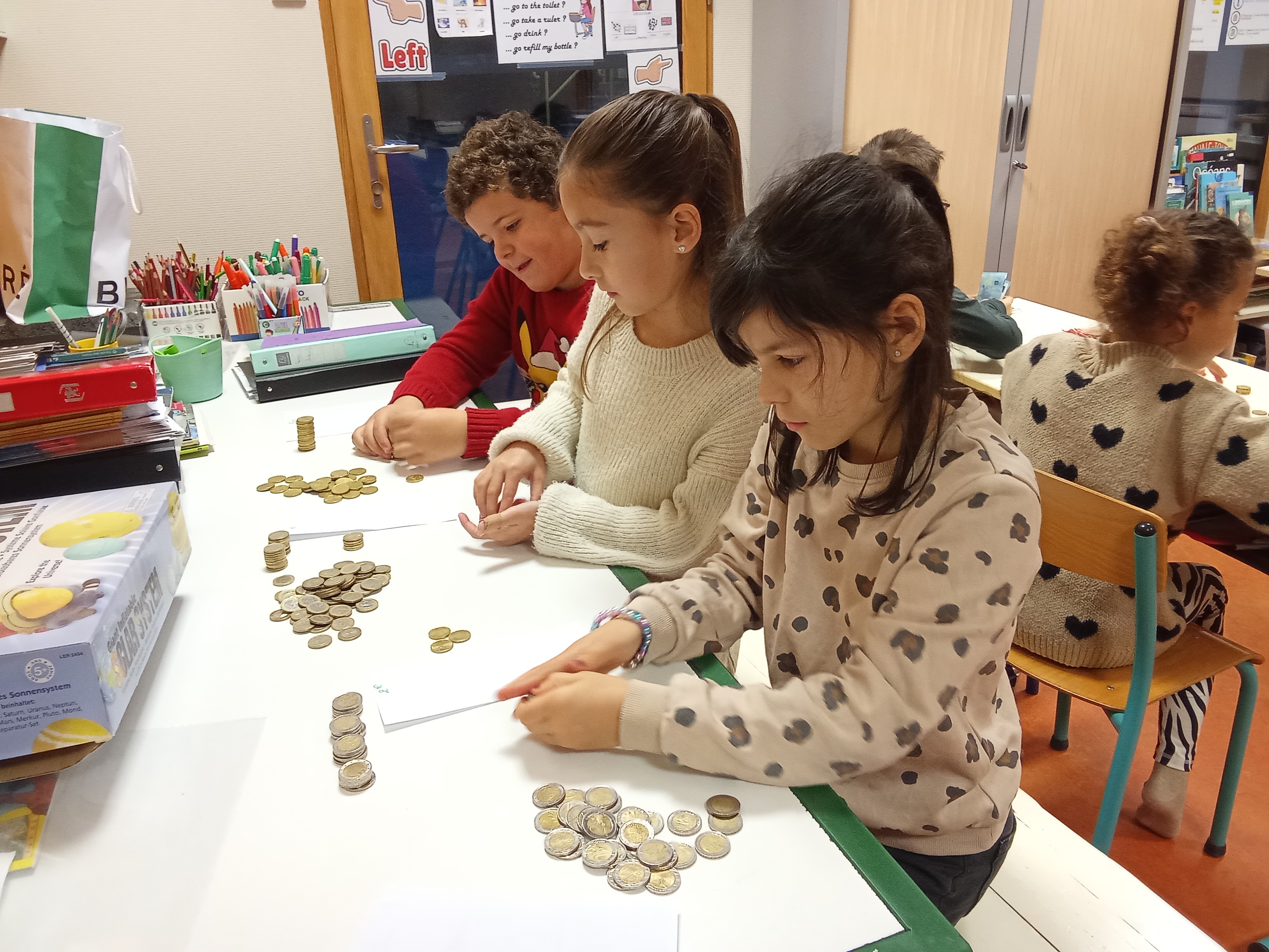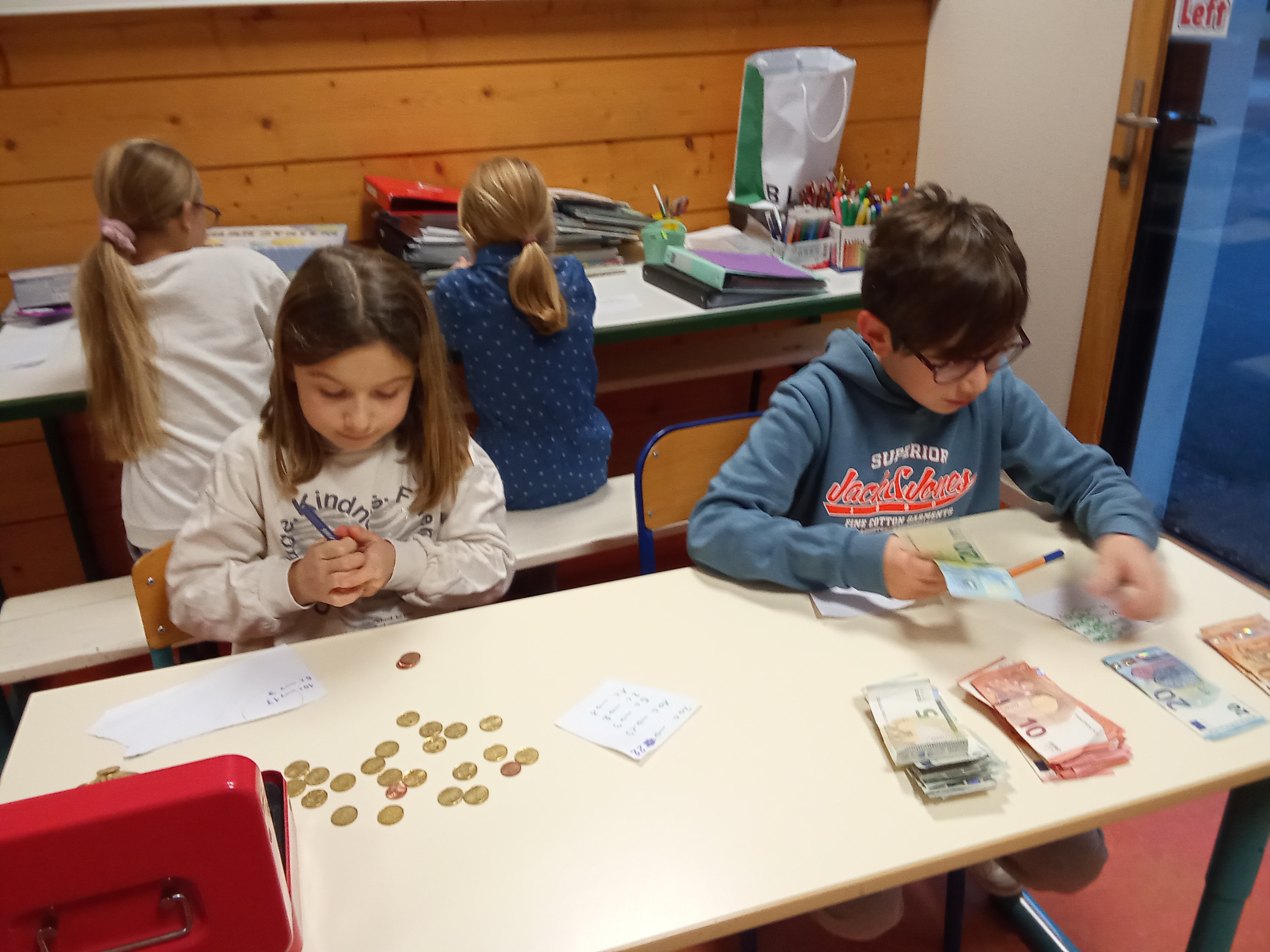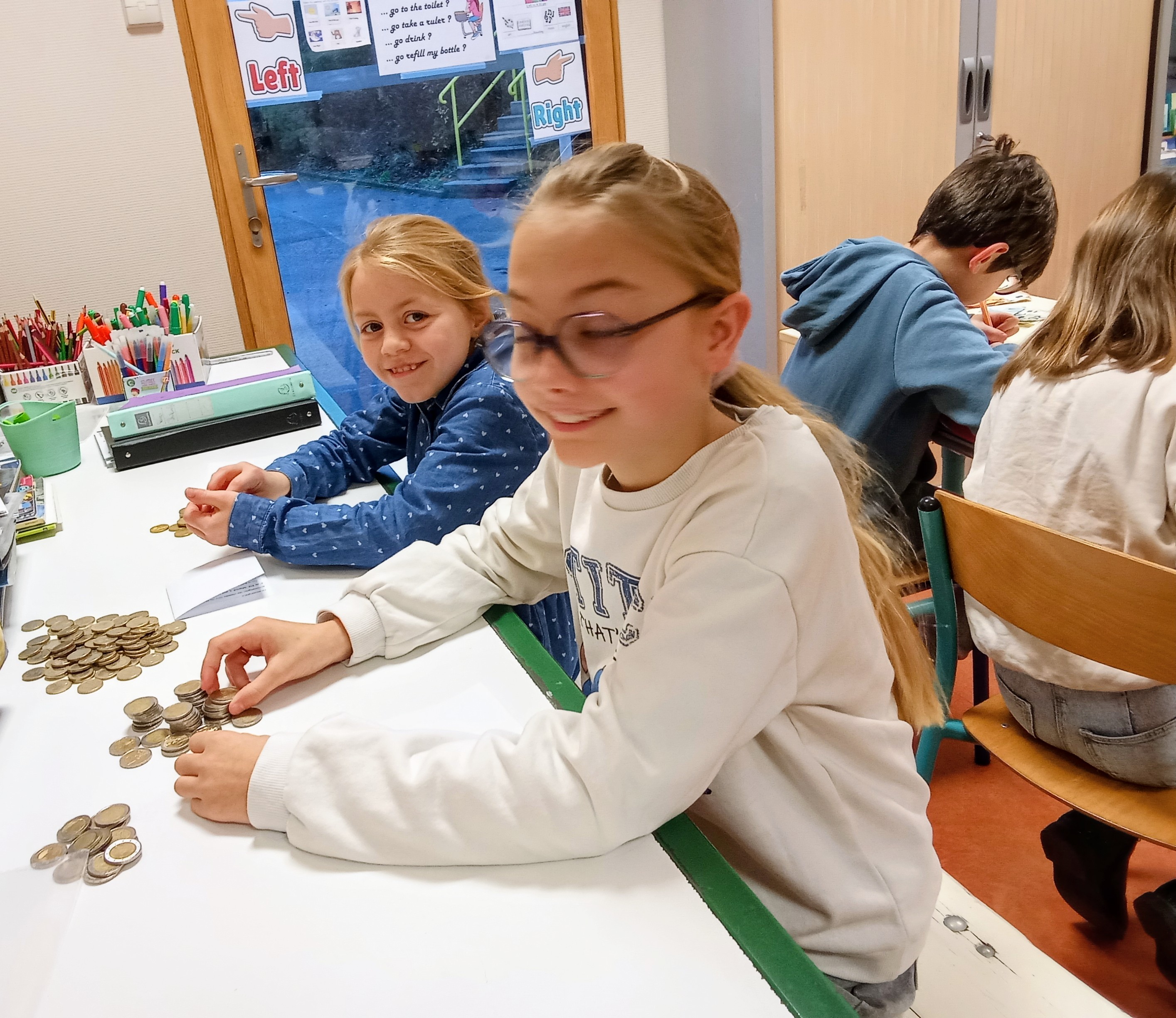 Le lundi, quel plaisir de compter les pièces, les billets ...L'occasion de réinvestir ses connaissances sur la monnaie et de résoudre quelques problèmes en français et en anglais !!!!