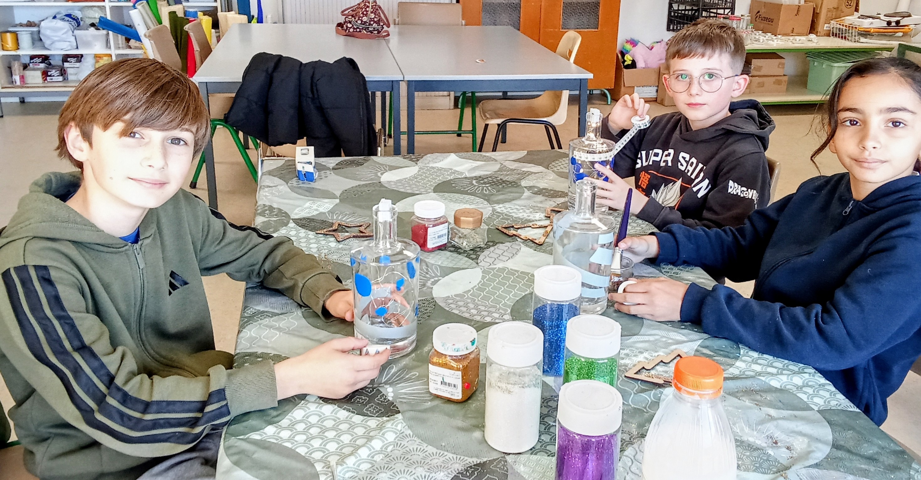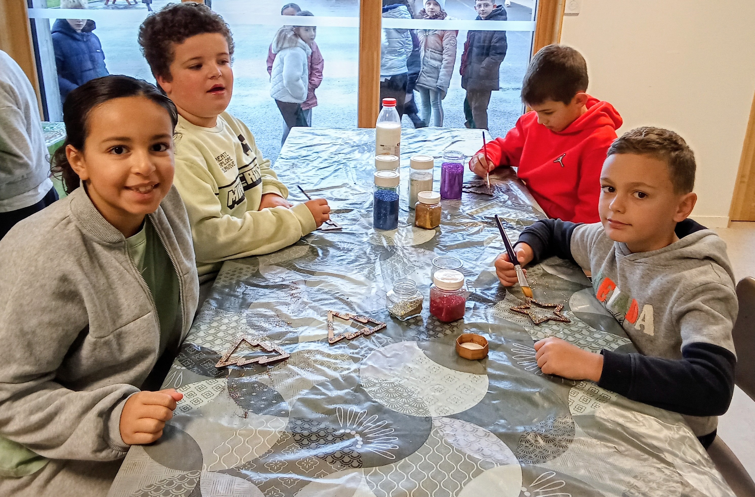 Pour la matinée du 7 décembre, les élèves de CE2 CM1 et CM2 ont proposé des décorations de Noel et des compotes préparées par leurs soins.