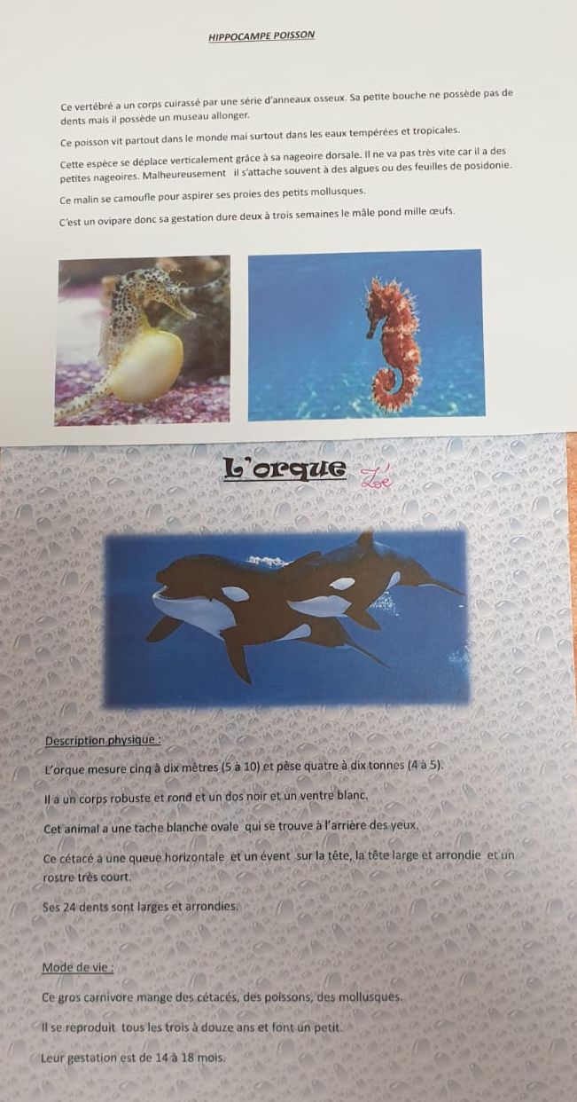 - exposés sur la faune et flore marine ....