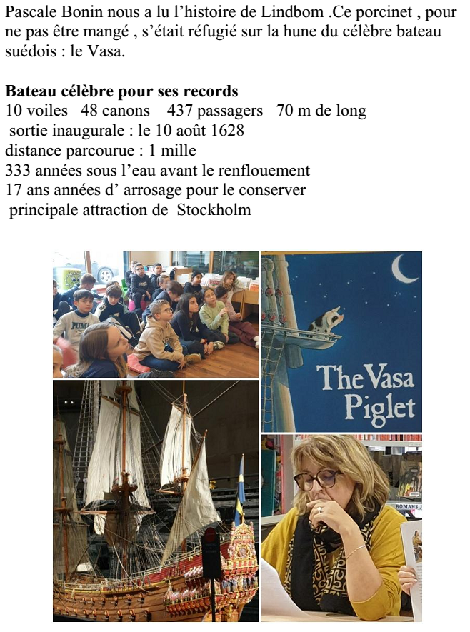 Mme Bonin avait préparé un exposé pour nous raconter la vraie histoire du Vasa, vaisseau de guerre qui a son propre musée en Suède.
