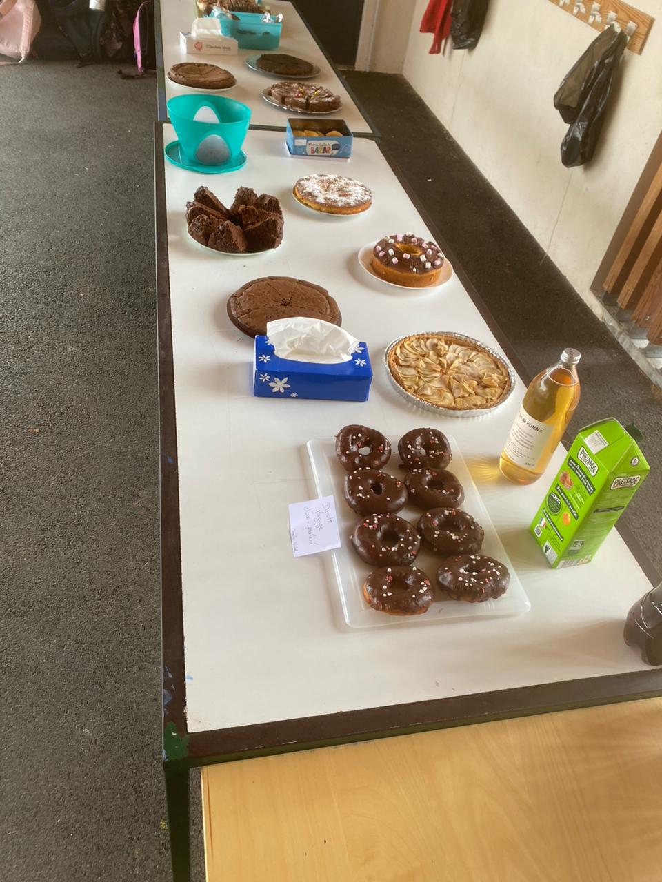 - organisation de vente de gâteaux et jus de fruits à l'école (aux vacances d'automne et d'hiver)