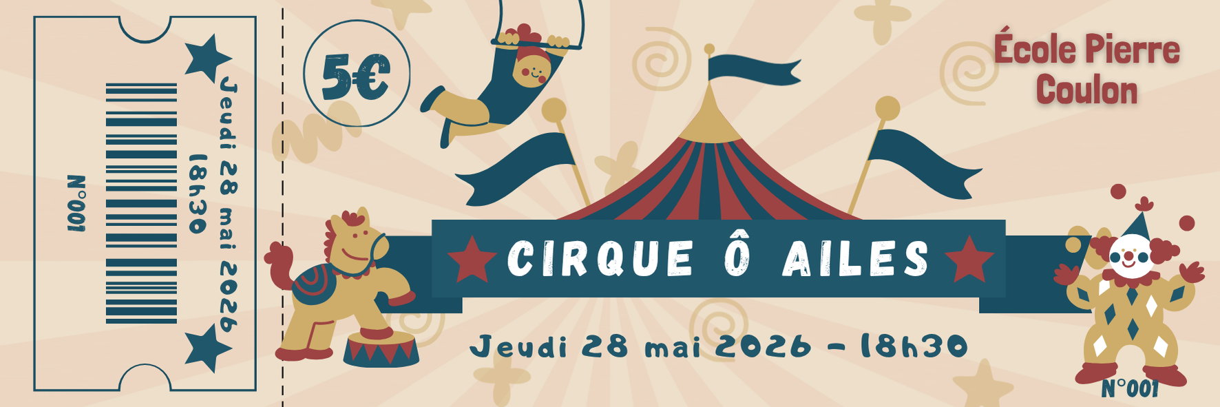 Nous allons accueillir un cirque professionnel au sein de l’école pour une durée de 5 semaines (du 27 avril 2026 au 30 mai 2026) comprenant :