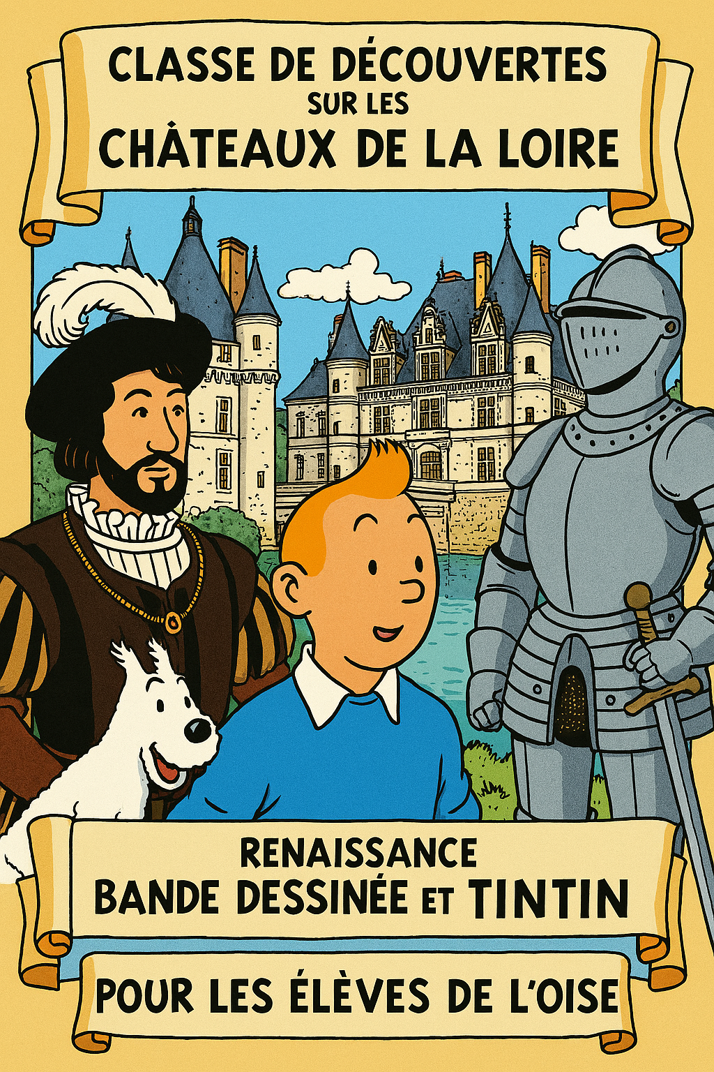 Présenté lors d'une réunion en septembre, le projet a reçu l'adhésion de la plus grande majorité des familles. L'objectif est de faire découvrir à nos élèves de milieu rural la richesse artistique et culturelle de la Renaissance à travers la découverte des Châteaux de la Loire et autour de la Bande Dessinée avec notamment la visite du Château de Cheverny, château qui a inspiré Hergé pour la demeure de Tintin.