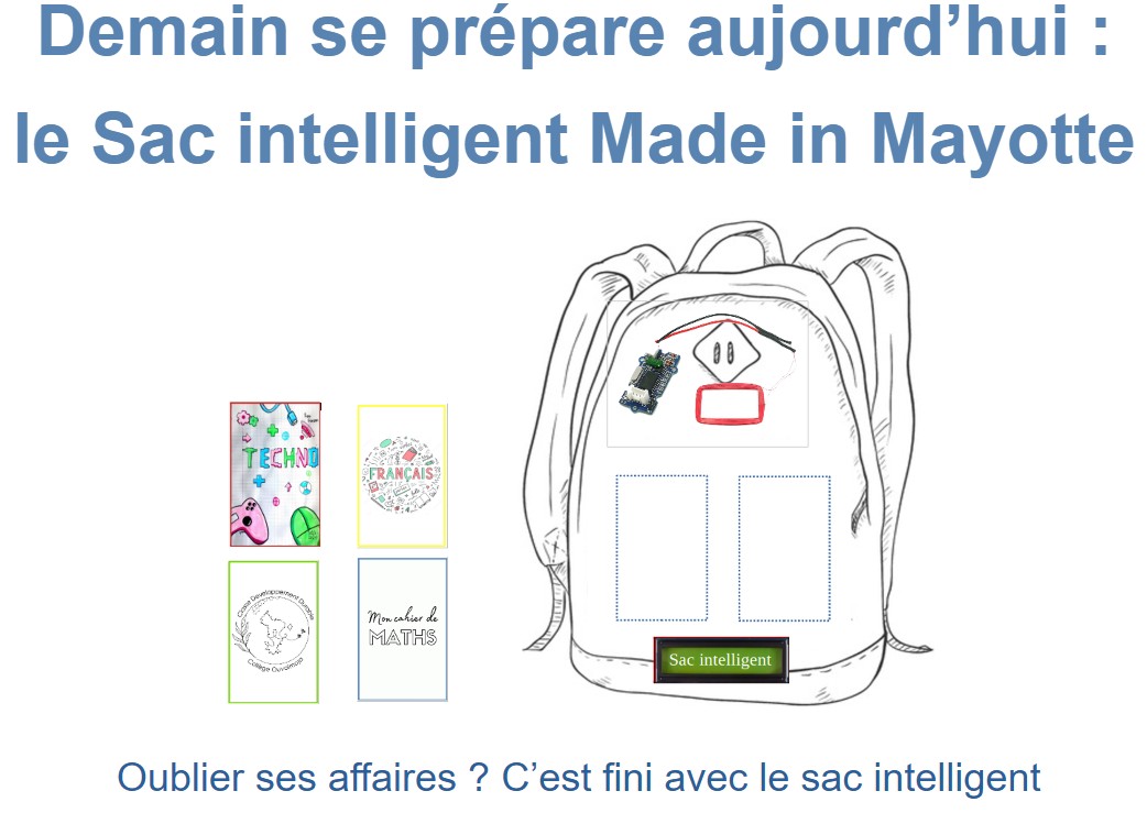 Son projet Sac intelligent, imaginé et construit collectivement, est un prototype destiné à l'accompagnement d'un enfant dans la préparation de son sac scolaire. Il aide ainsi les collégiens à ne rien oublier et à gagner en autonomie.