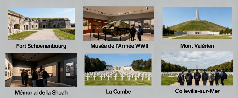 Le quatrième jour, en Normandie, les élèves visiteront le musée Overlord et le cimetière américain de Colleville-sur-Mer, lieux symboles du Débarquement et du sacrifice des soldats alliés, avant de se rendre au cimetière allemand de La Cambe, offrant ainsi une perspective équilibrée sur la mémoire des combats et la nécessité de la réconciliation.