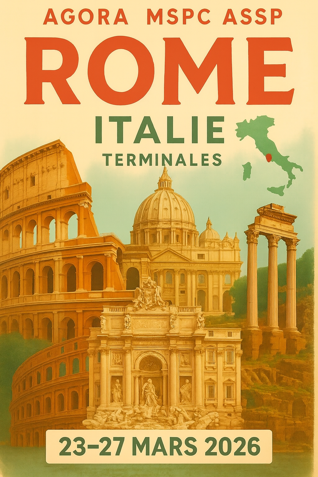 Notre projet est de partir à Rome pour découvrir la culture et l’histoire de ce pays. Le voyage est prévu du 23 au 27 mars 2026 et voici ce qui est prévu :
