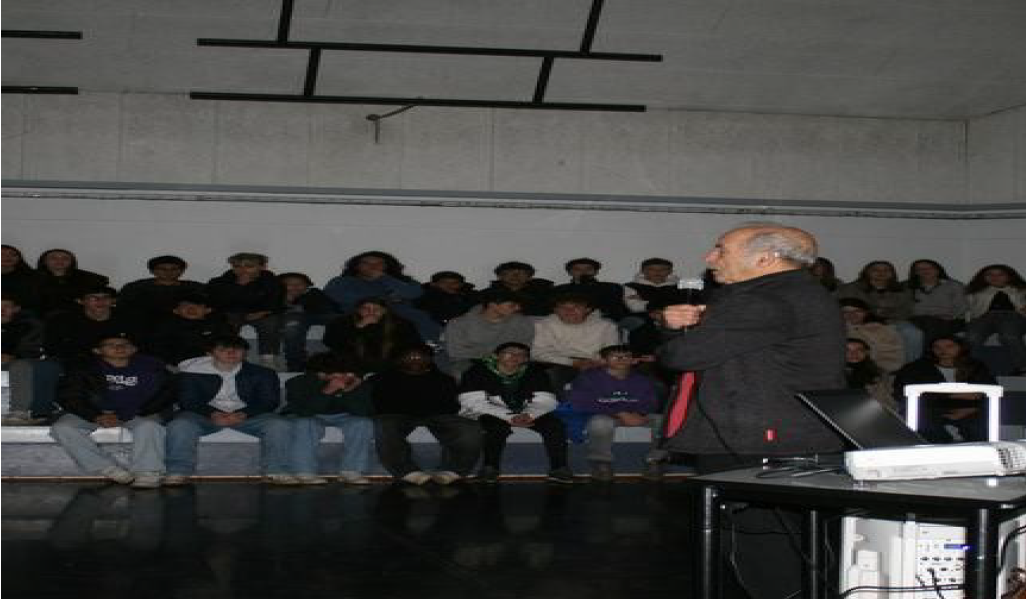 Les élèves étaient réunis le 16 décembre à l’atrium du Centre animation et rencontres pour écouter un premier témoignage, celui d’Émile Vallés, fils de républicain espagnol, historien et auteur de « Itinéraires d’internés du camp de Gurs ».