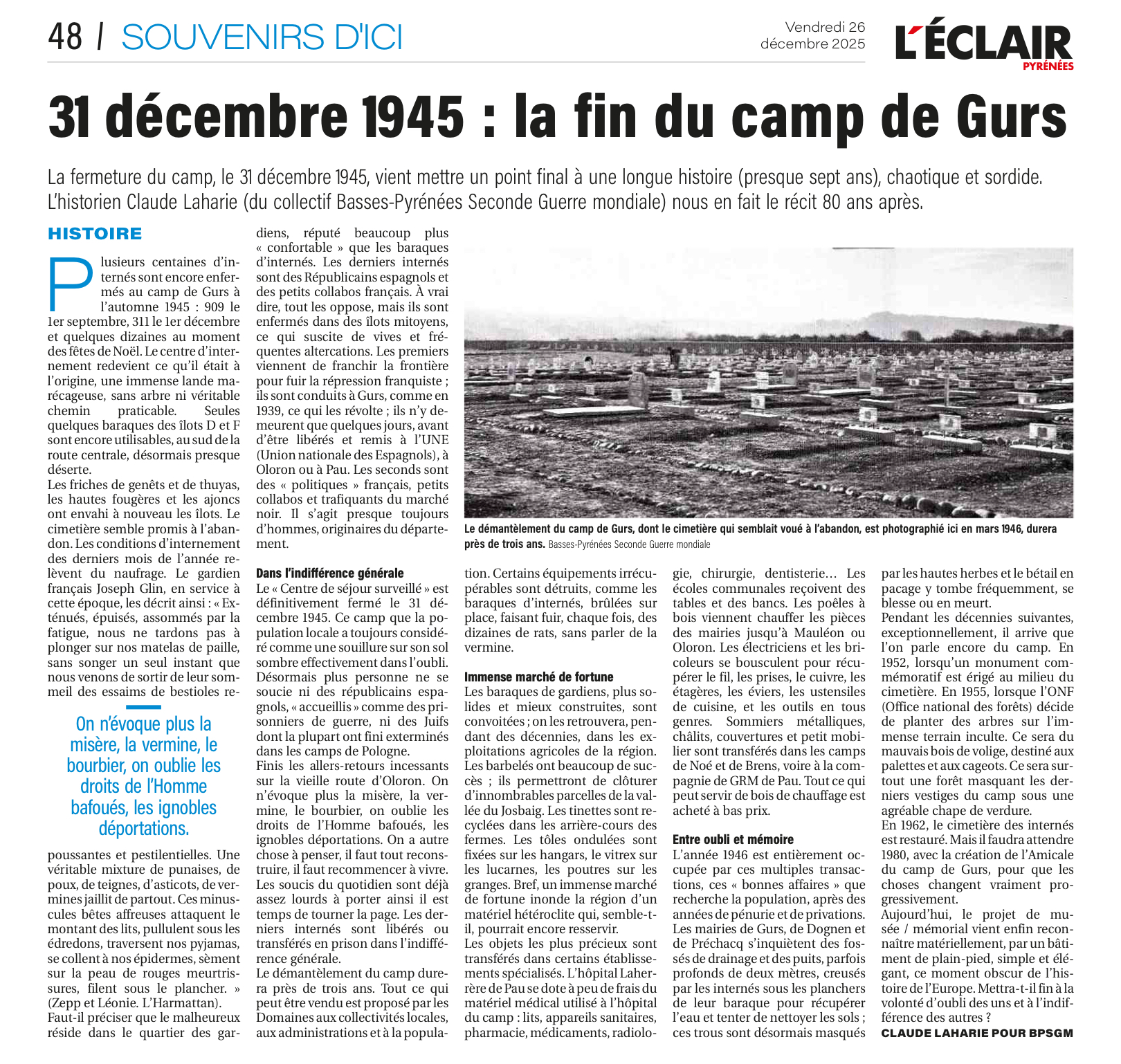 Article La République des Pyrénées - Gurs - Monsieur Vallés - Simin Palay