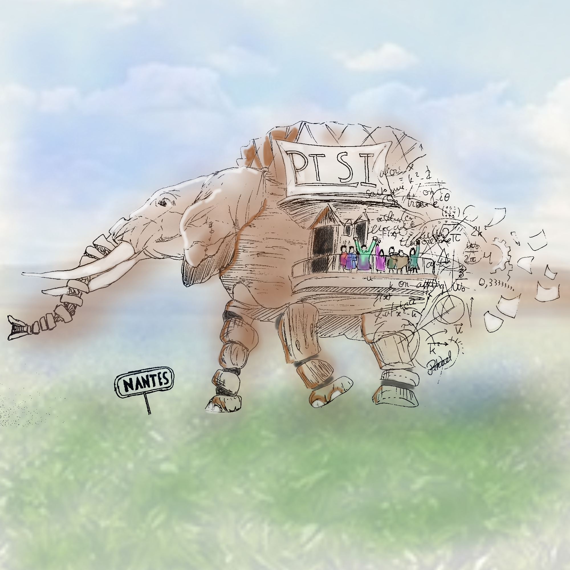 Grâce à votre générosité et à votre soutien, la campagne de financement a franchi une étape clé : 50 % de l’objectif atteint ! Pour célébrer cette belle avancée, comme promis, voici la surprise préparée par un élève, Paul K. : un dessin en couleur représentant le voyage à Nantes des PTSI.
