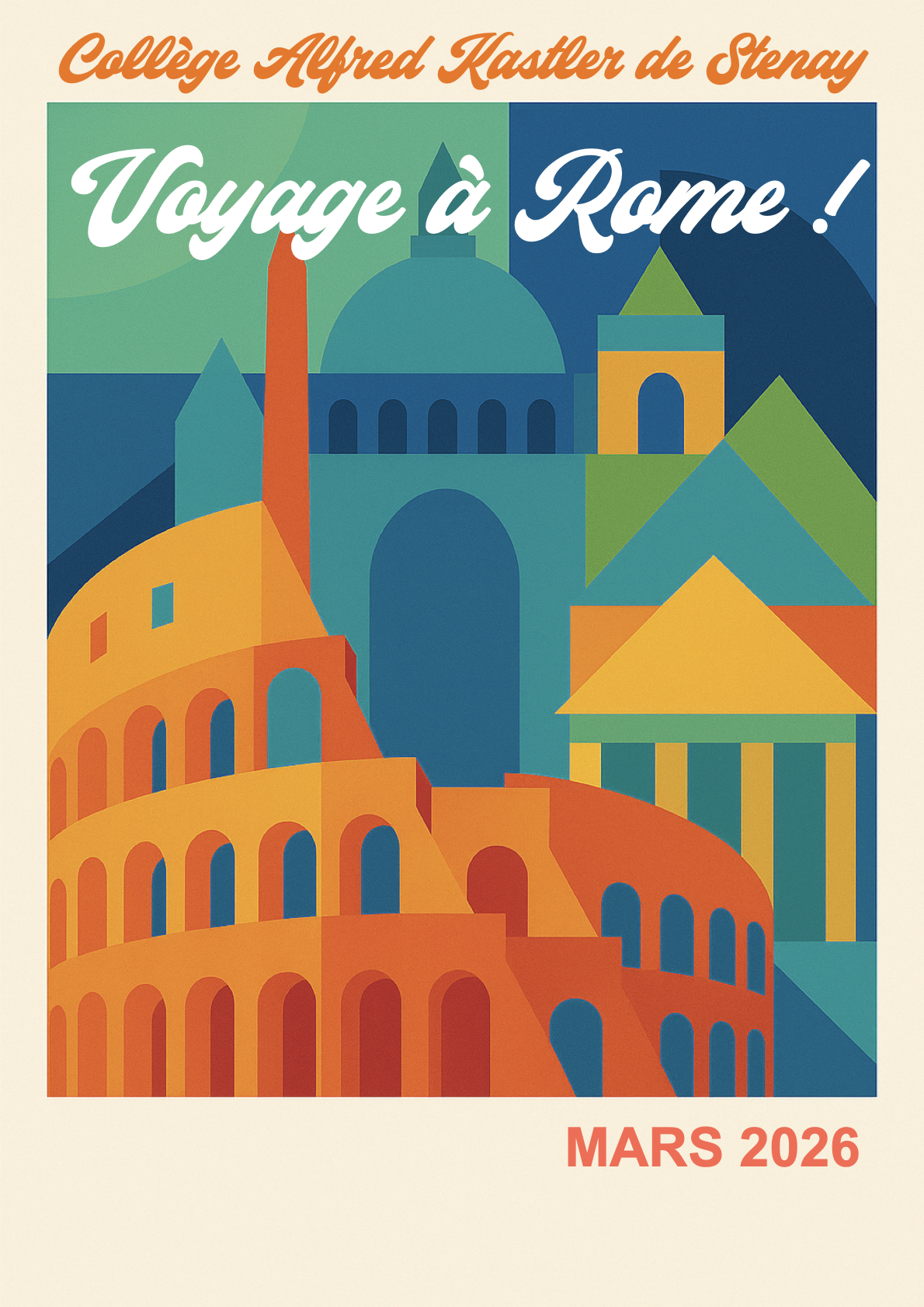 Le collège ALFRED KASTLER DE STENAY (55, MEUSE) organise un voyage pédagogique d’une semaine à Rome en mars 2026 pour 49 élèves latinistes et italianisants, accompagné de 4 enseignants. L'établissement est classé REP.