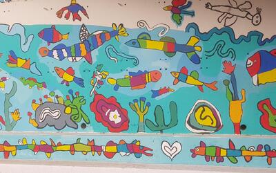 Nous souhaitons poursuivre un projet engagé en 2023 avec une première grande fresque réalisée sur le thème de "la source et le monde aquatique", en écho au nom de notre école.