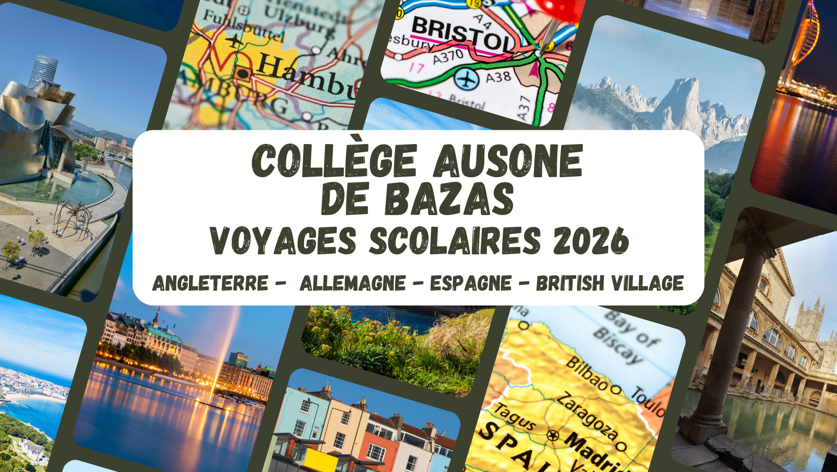 Nous sommes 183 élèves du Collège Ausone, à Bazas, en classe de 3e et 6e. Depuis notre territoire rural et très riche culturellement, nous avons soif de découvrir les autres cultures !