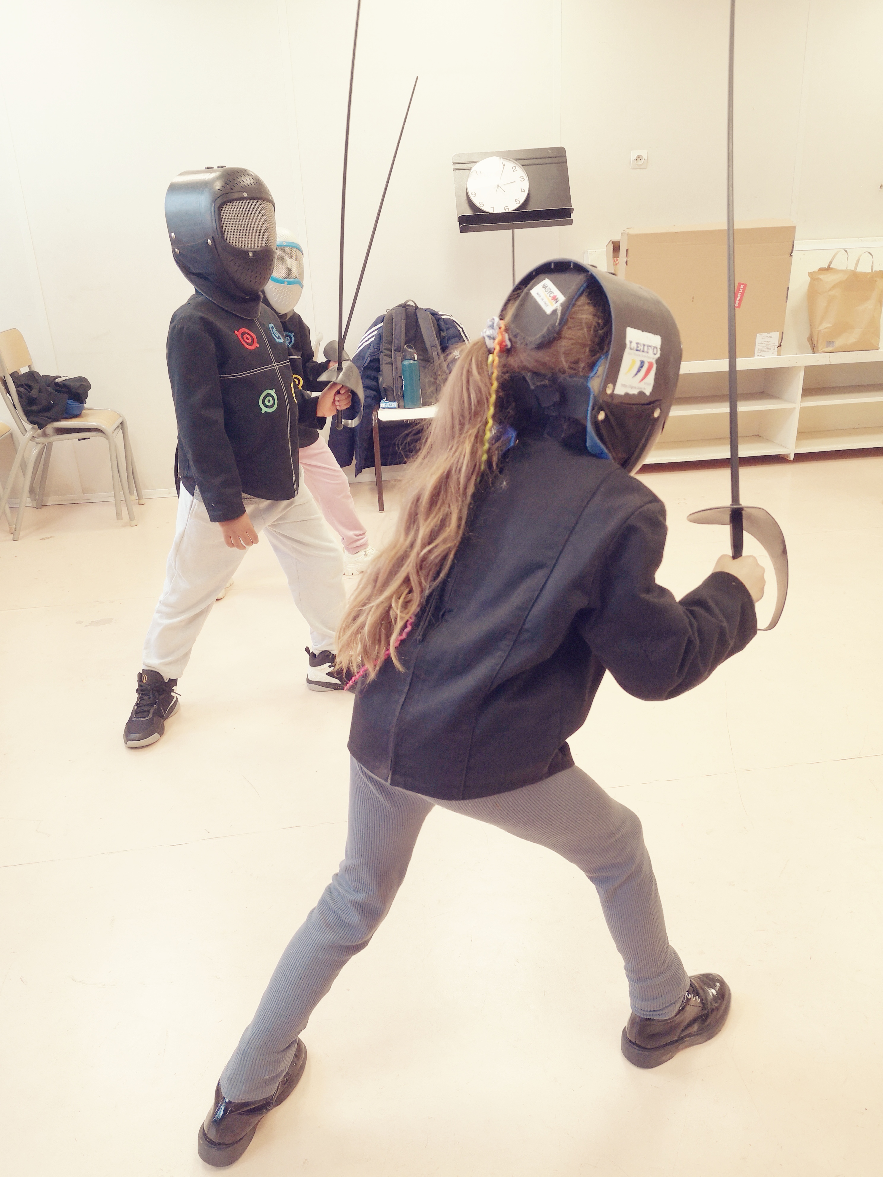 Du 15 janvier au 20 février 2026, un maitre d'armes interviendra auprès des 8 classes de l'école du cp au cm2 afin de les accompagner dans la pratique de l'escrime.
