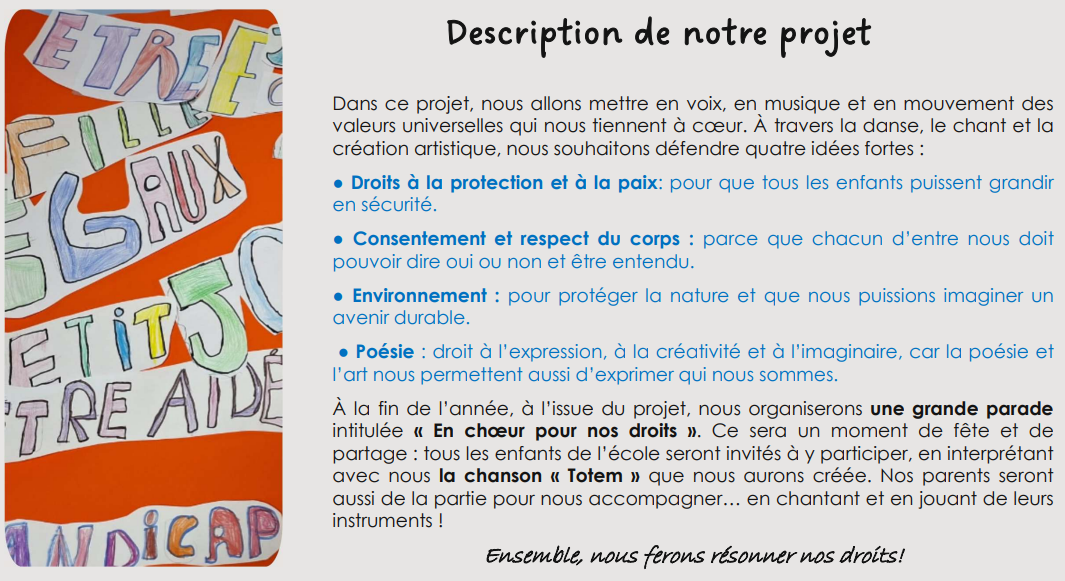 Aidez nos trois classes à chanter et danser leurs droits