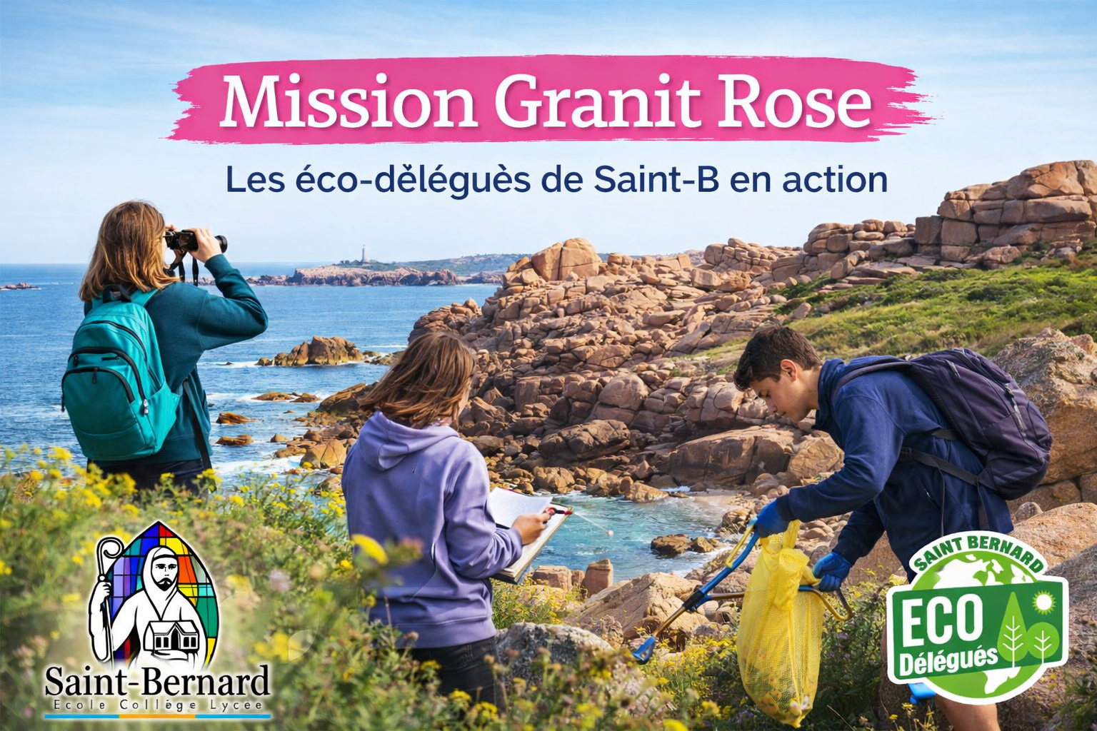 Le projet « Mission Granit Rose : les éco-délégués de Saint-B en action » est porté par les éco-délégués de l’établissement Saint-Bernard des trois unités pédagogiques (école-collège-lycée), accompagnés des deux référents développement durable.