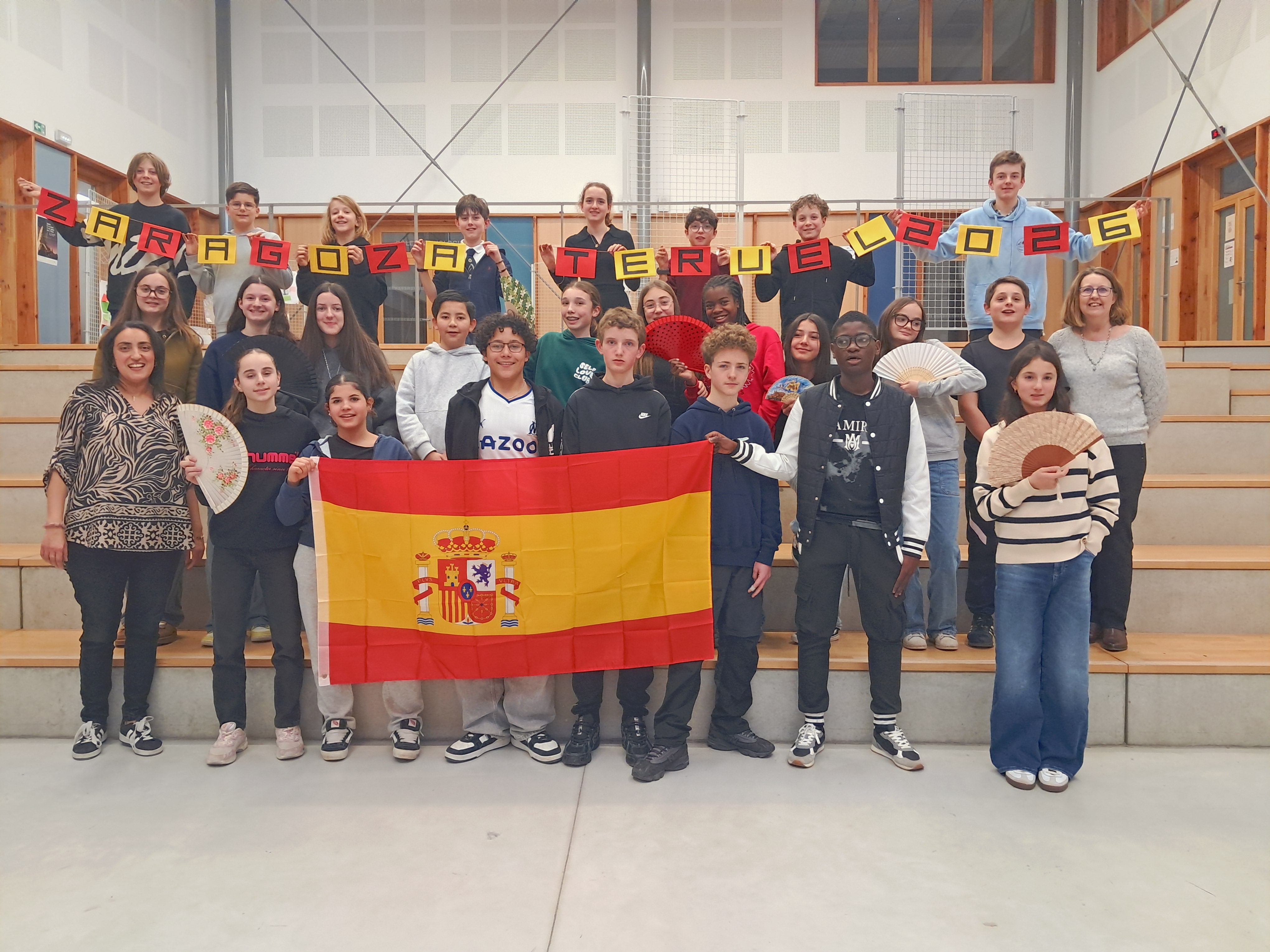 Nous sommes 26 élèves hispanistes de 4ème du collège Jules Flandrin, à Corenc, en Isère. Accompagnés de nos professeurs , nous effectuons un séjour linguistique à la découverte de Saragosse et de Teruel, deux villes situées dans l'Aragon en Espagne. Nous serons hébergés en famille.