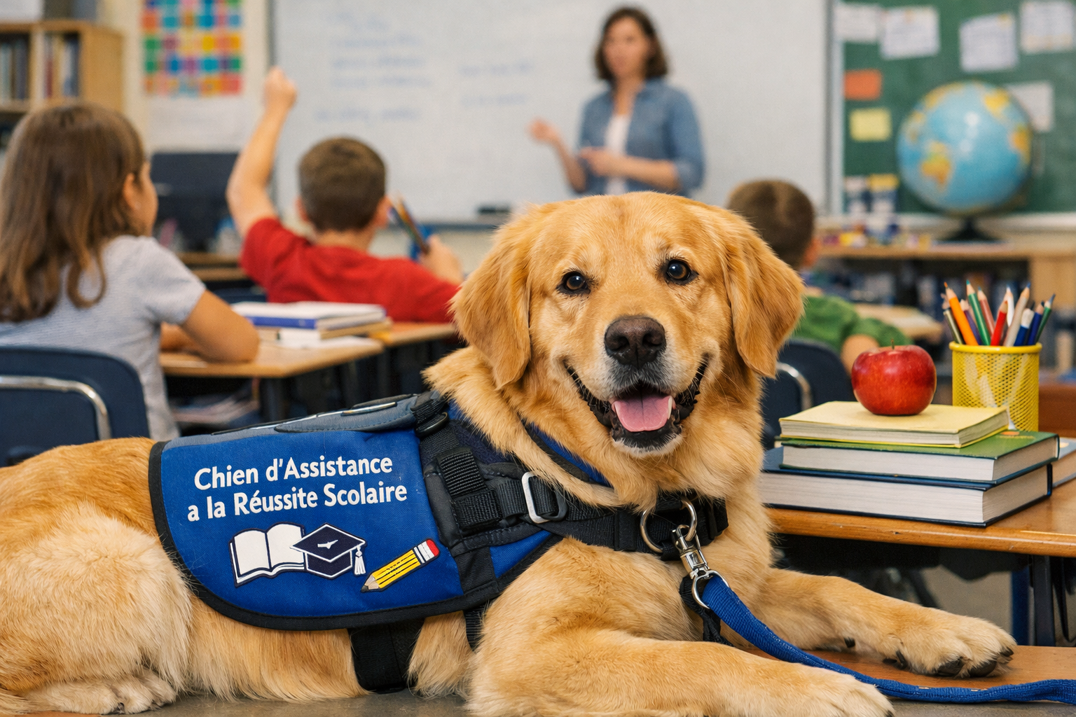 Et si un chien d’assistance à la réussite scolaire venait changer les choses ? Un chien qui apaise, qui rassure, qui crée du lien. Un médiateur silencieux, capable de rassembler sans juger, de favoriser l’écoute, la bienveillance, l’attention. Parce qu’un élève apaisé, c’est un élève qui apprend mieux. Parce qu’un chien ne voit ni classe sociale ni différence, il voit juste un enfant.