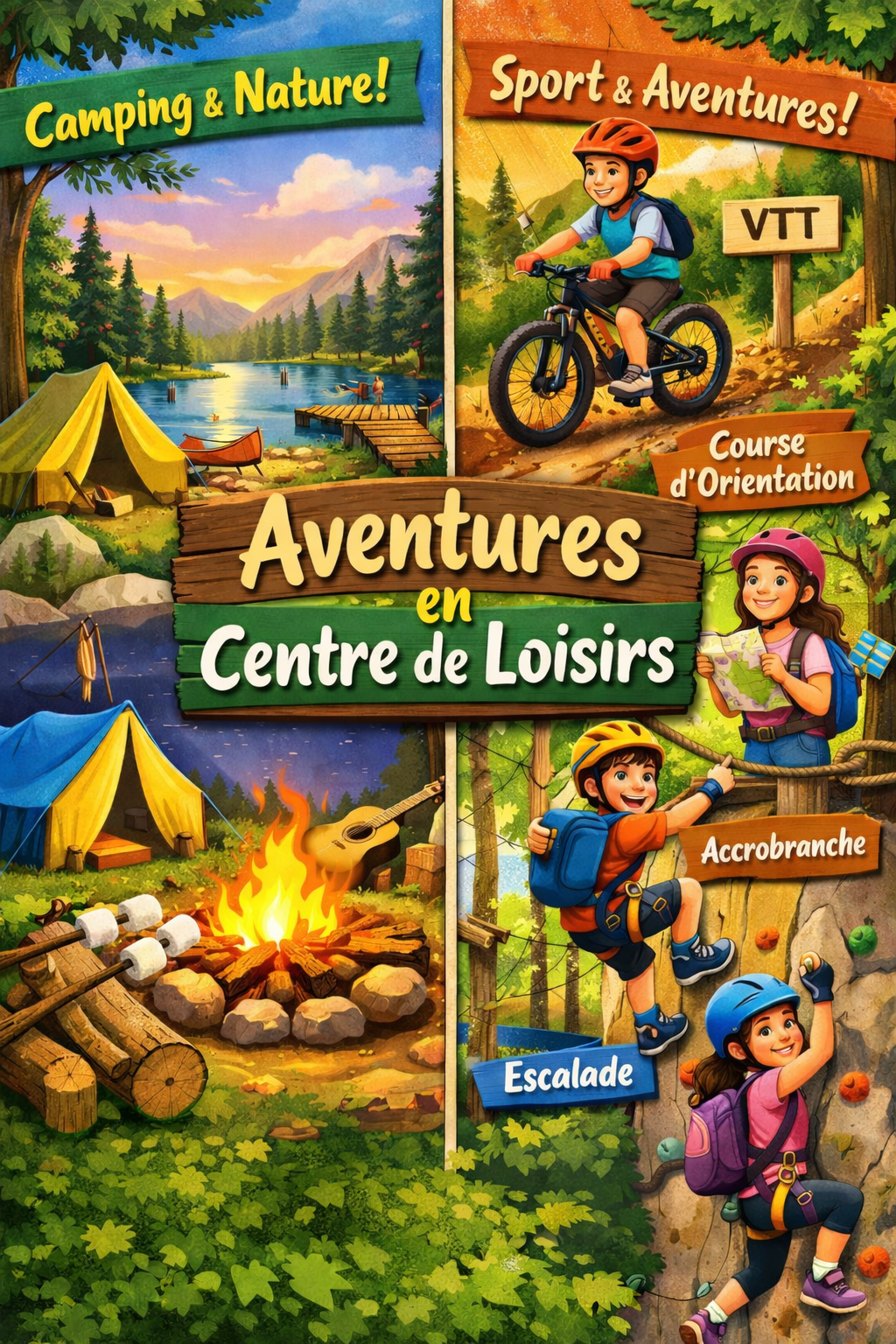 A notre arrivée sur le centre, les élèves seront répartis en 4 groupes et participeront à leur premier atelier sportif. Ils pratiqueront tous tout au long de la journée : escalade, VTT, accrobranche et course d'orientation avec des éducateurs sportifs. Le midi, ils déjeuneront en plein air (pique-nique). En fin de journée, ils pourront s'installer dans leur "chambre" en tente et expérimenter la douche en camping. Un repas chaud leur sera servi avant de participer à une veillée (Just Dance vidéoprojeté et une histoire avant d'aller au lit). Le lendemain, nous repartirons vers l'école après le petit-déjeuner.
