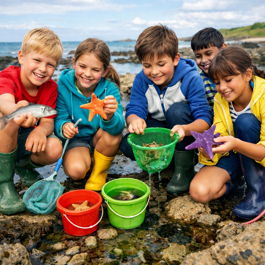 … SUR L’OCEAN : pêche à pied (et exploitation : observation, classification, fresque…), laisse de mer et land art pour comprendre la notion de déchet et en faire une exploitation en arts visuels, découvrir les algues, découverte des dunes et des prés salés…
