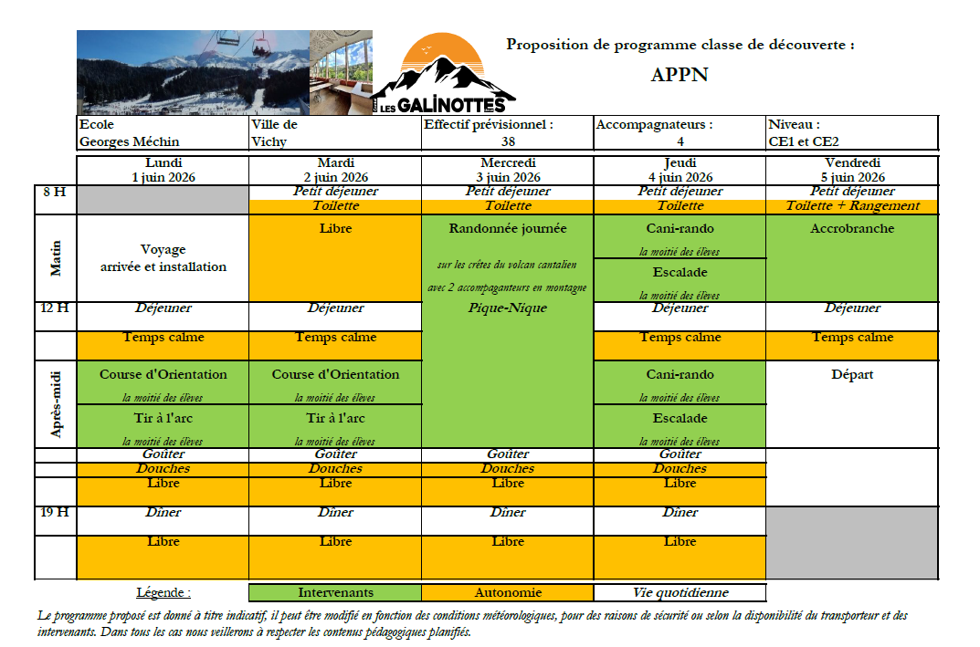Notre projet pédagogique s’articule autour d’une classe verte à la montagne qui se déroulera au Lioran (Cantal) du 1er au 5 juin 2026 ( 5 jours / 4 nuitées).